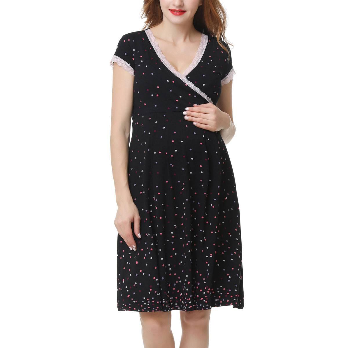 This Womens Pokkori by Kimi & Kai maternity nursing nightgown will adapt to your changing body from pregnancy to motherhood. Features a flattering surplice neckline, empire waist, and pretty lace trim. A hidden layer along the neck can be pulled aside for easy and discreet nursing.