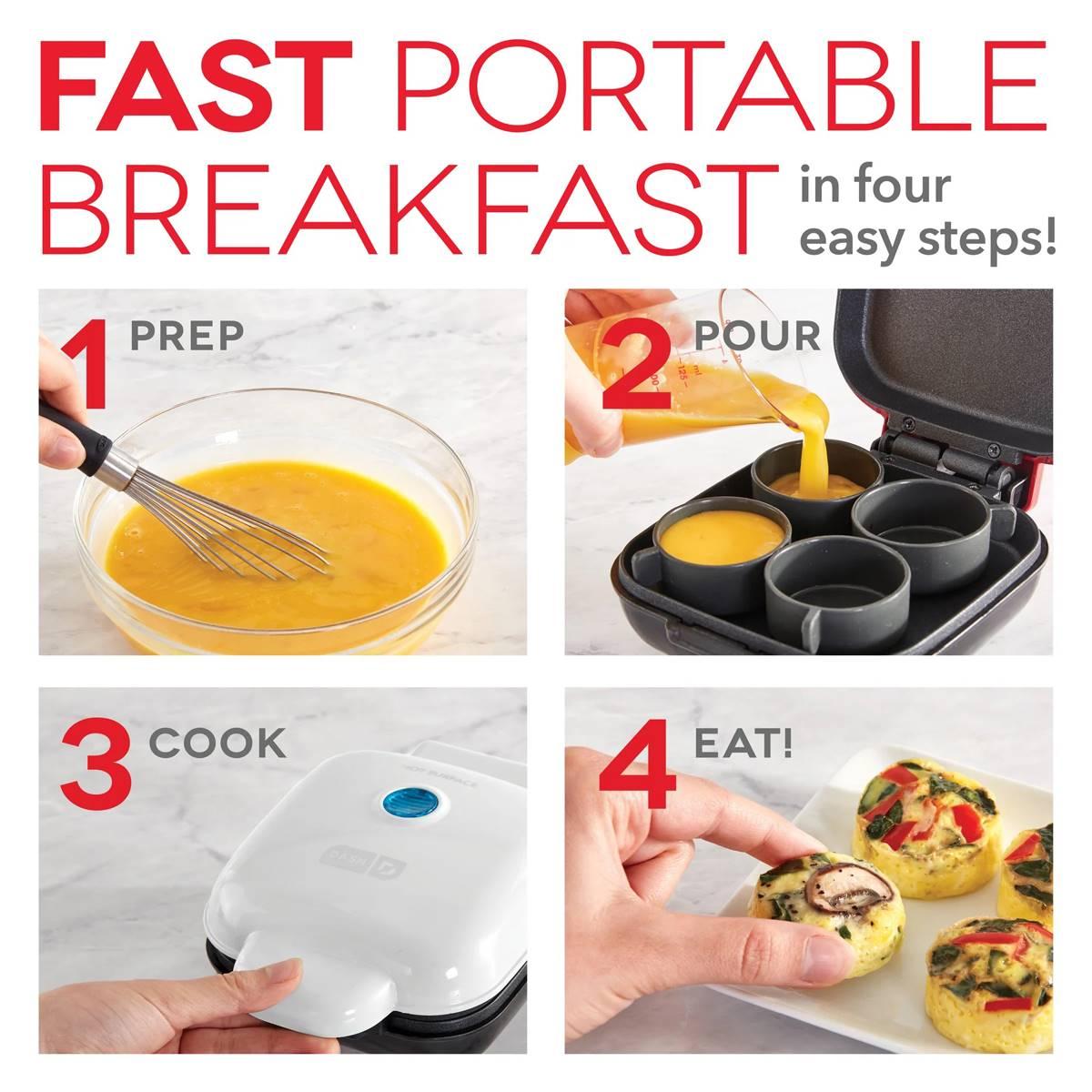 Prepare flavorful egg bites at home with the Dash Egg Bite Maker! Perfect for a healthy, protein-packed lifestyle, simply whisk eggs, add your toppings, and cook — egg bites are ready in as little as 10 minutes! Make four egg bites at once with the Egg Bite Maker’s four Silicone Cups, designed to release easily for the perfect shape every time. Our included recipe guide includes a variety of different recipes, so that you’ll easily make delicious egg bites that are great for meal prep, freezing for later, or breakfasts on the go! The PTFE nonstick makes cooking and cleaning easy.This product contains (Este producto contiene) Aluminum, Phenol, PFAS (PTFE, PFA, FEP, used for nonstick properties), N-methylpyrrolidone,and Carbon black (airborne, unbound particles of respirable size). For more information on PFAS or chemicals in this product, visit (Para obtener mas informacion sobre PFAS o productos quimicos en este producto, visite) https://bydash.com/pages/ab1200