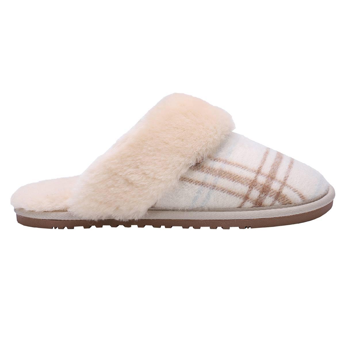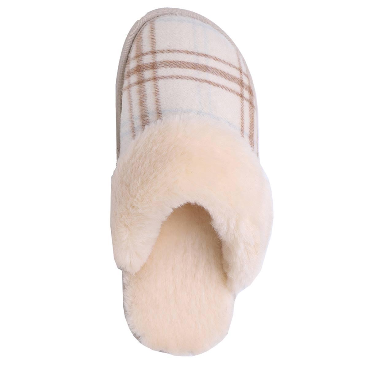 Description These Womens LAMO Sheepskin scuff plaid slippers are perfect for the cold weather. This entry-level scuff is made with a textile upper, is lined with premium faux...