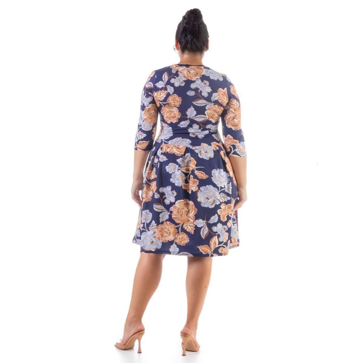 Plus Size 24/7 Comfort Apparel Rose 3/4 Sleeve Pleated Dress