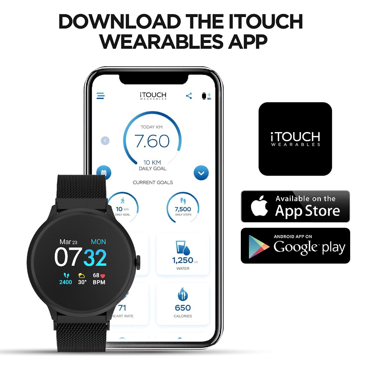 The Unisex iTouch Sport 3 smartwatch has a round rose gold metal case with a thickness of 12mm and a width of 46mm comes along with a merlot silicone strap with a length of 223mm and a width of 20mm, which includes a buckle clasp. It has many new and improved features like a heart rate monitor, relaxation Mode, sleep monitor, sedentary reminder, calorie tracker, distance tracker, sport modes, body temperature monitor, customizable Watchface (in-app), stopwatch, countdown timer, alarm (vibrating), hydration & hygiene reminder while keeping up with all your notifications. It also includes smart features like motion gestures, daily weather forecast, music remote, find my watch, camera remote, connected GPS (in-app), power saving mode, and OTA support for updates. Requires iPhones running iOS 13 or higher and Android phones running Android 9 or higher.Limited Manufacturer´s Warranty.