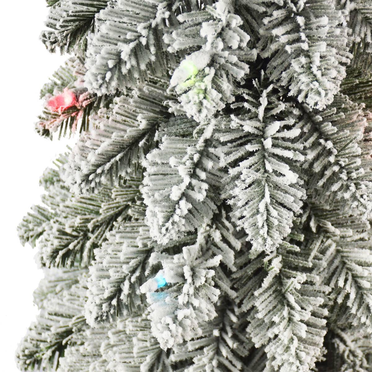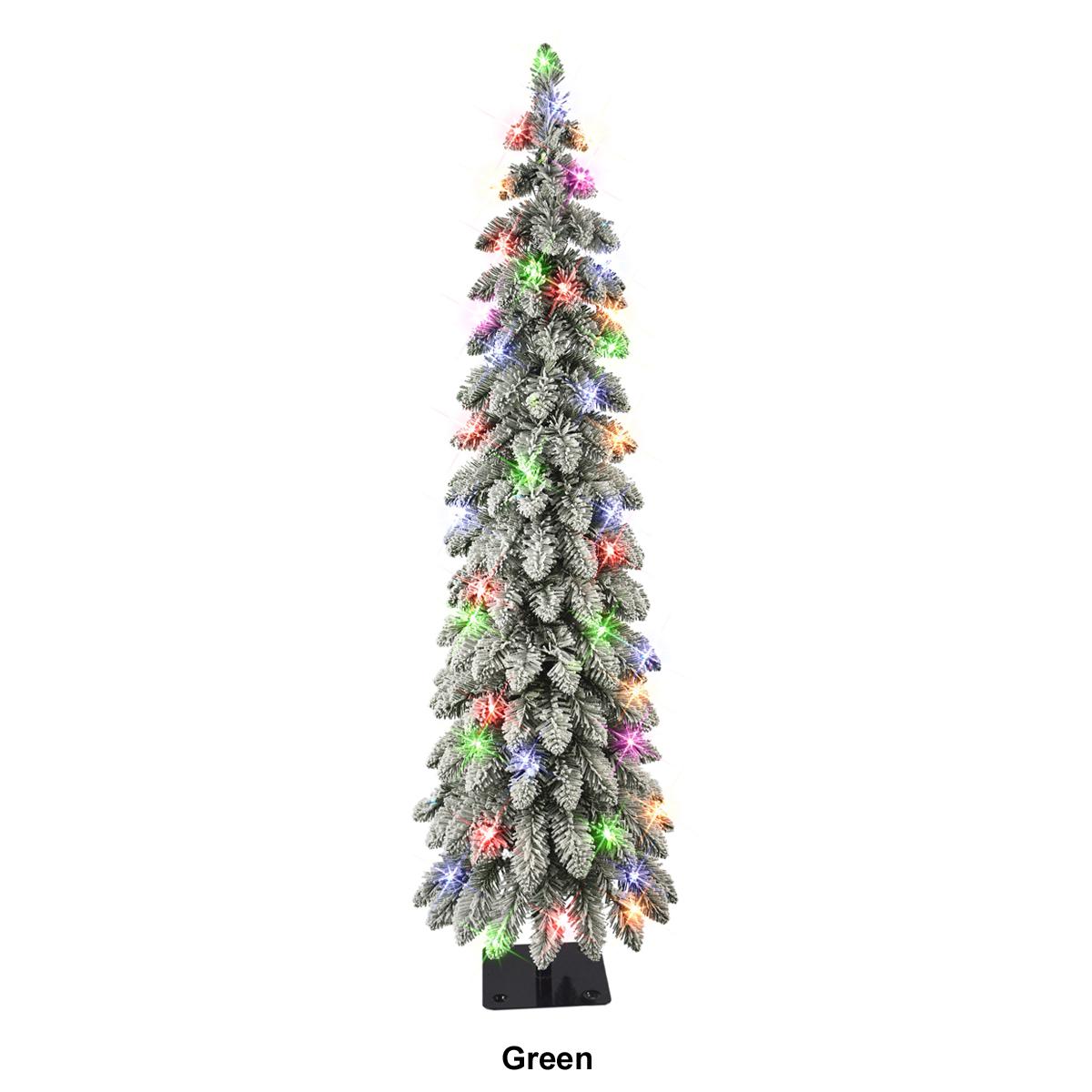 Embrace the joy of the holiday season in your home with the Puleo International pre-lit PVC 50 pre-attached UL-listed multicolored incandescent lights flocked 4-foot Alpine Pencil Christmas tree. This artificial holiday tree with elegant snow-dusted pine needles stimulates a realistic feel to deliver a perfect touch of snowy ambiance even if a white Christmas is not on the forecast.
