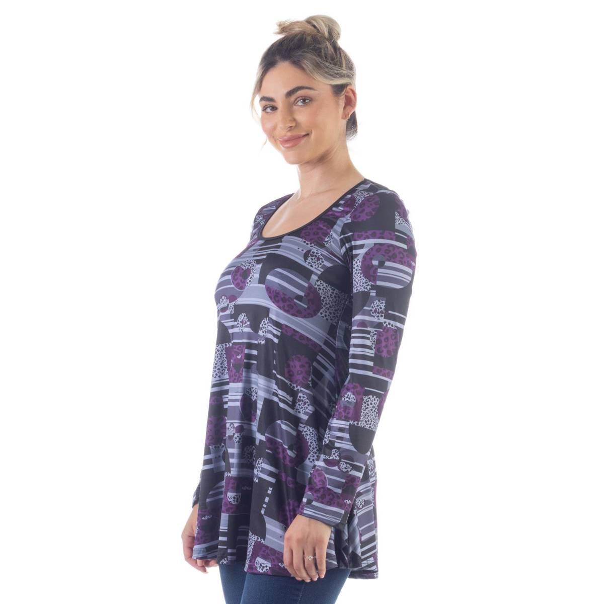 Description This Womens 24/7 Comfort Apparel geometric cheetah tunic will easily become a favorite for the season. Features a scoop neckline, long sleeves, and a relaxed flared...