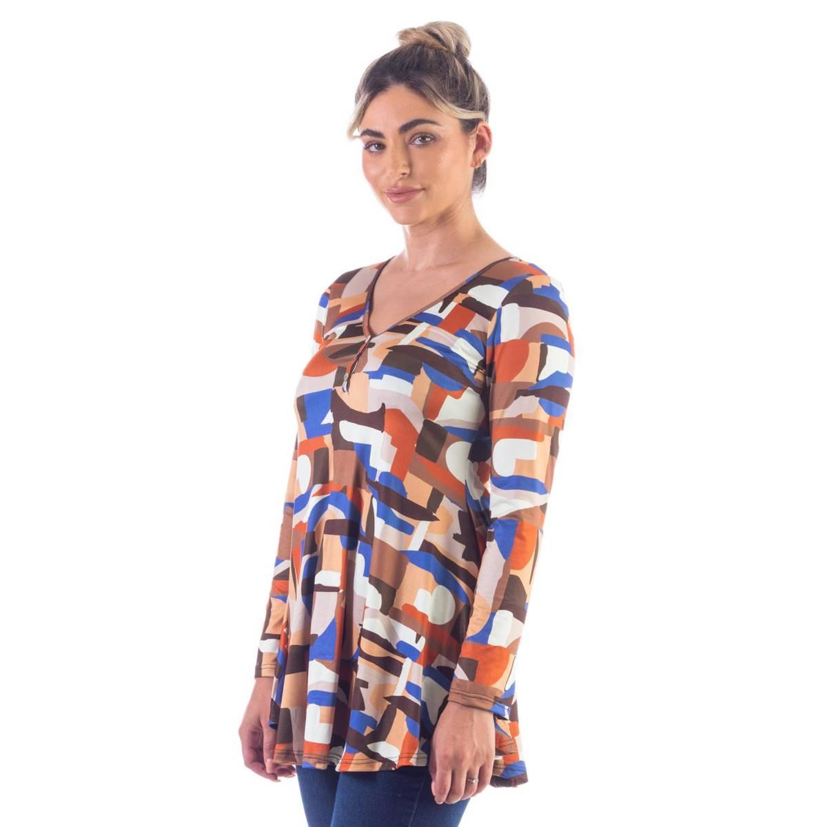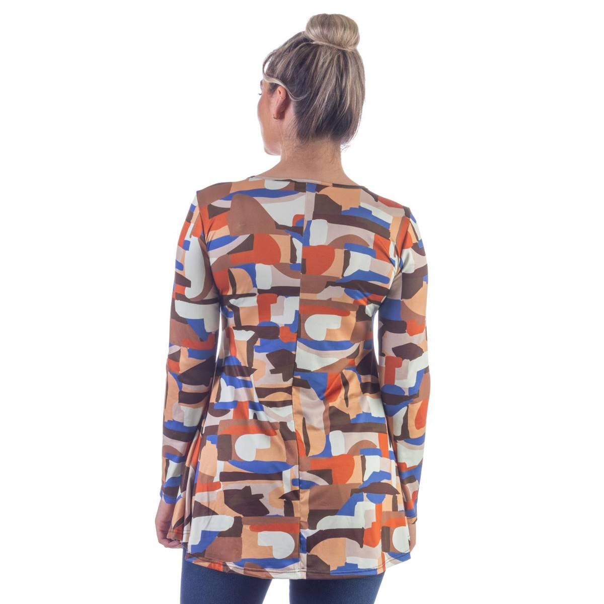 This Womens 24/7 Comfort Apparel geometric v-neck tunic is a perfect addition to your wardrobe. Featuring a v-shaped neckline, long sleeves, and a relaxed flared shape. Wear this comfortable top with jeans and flats for an easy casual look or style it with boots for a stylish season outfit.