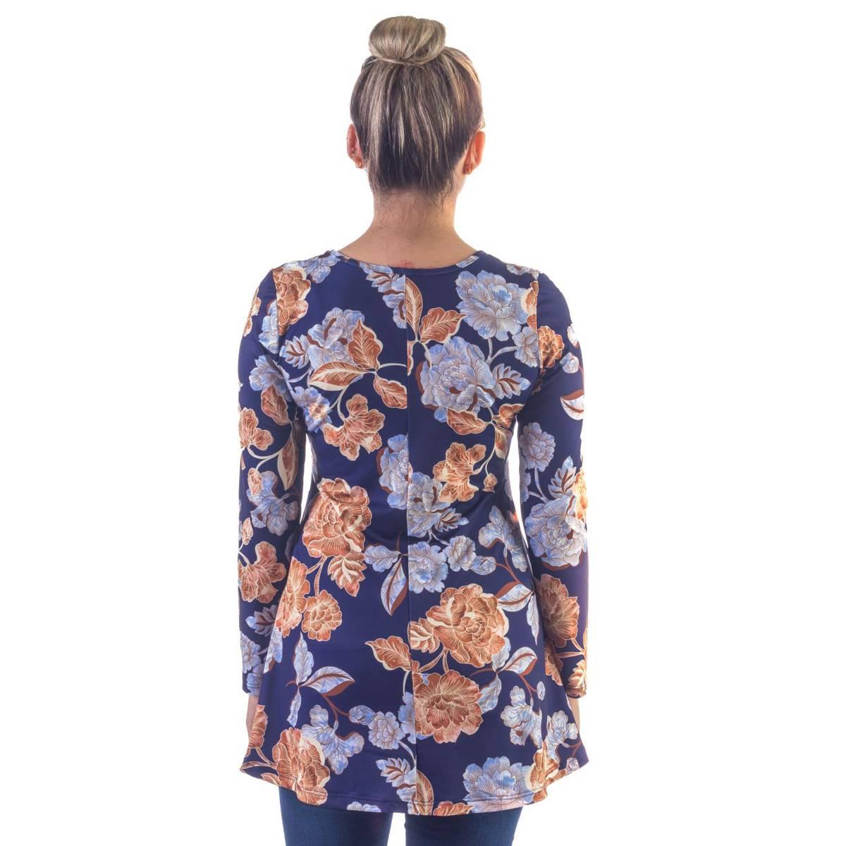 This Womens 24/7 Comfort Apparel floral long sleeve tunic is a perfect addition to your wardrobe. Featuring a v-shaped neckline, long sleeves, and a relaxed flared shape. Wear this comfortable top with jeans and flats for an easy casual look or style it with boots for a stylish outfit.