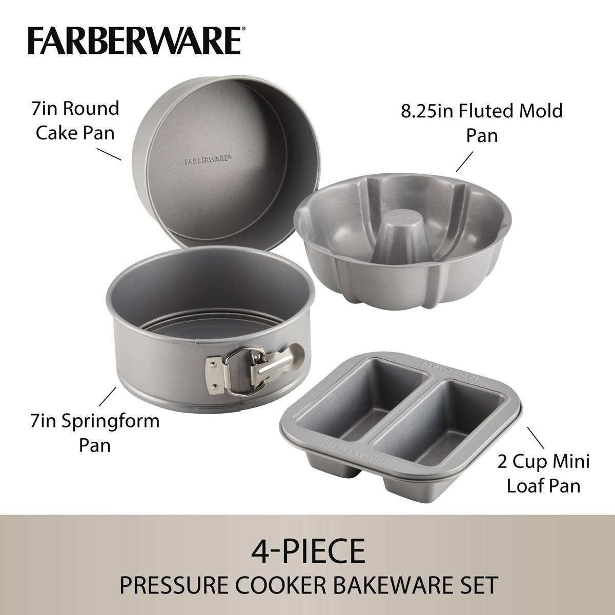 Description Ready, set, bake! Or roast, toast, oven bake, and pressure cook your way to delicious recipes with the Farberware® specialty bakeware non-stick 4-piece pressure...
