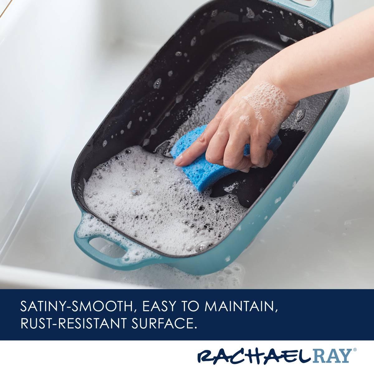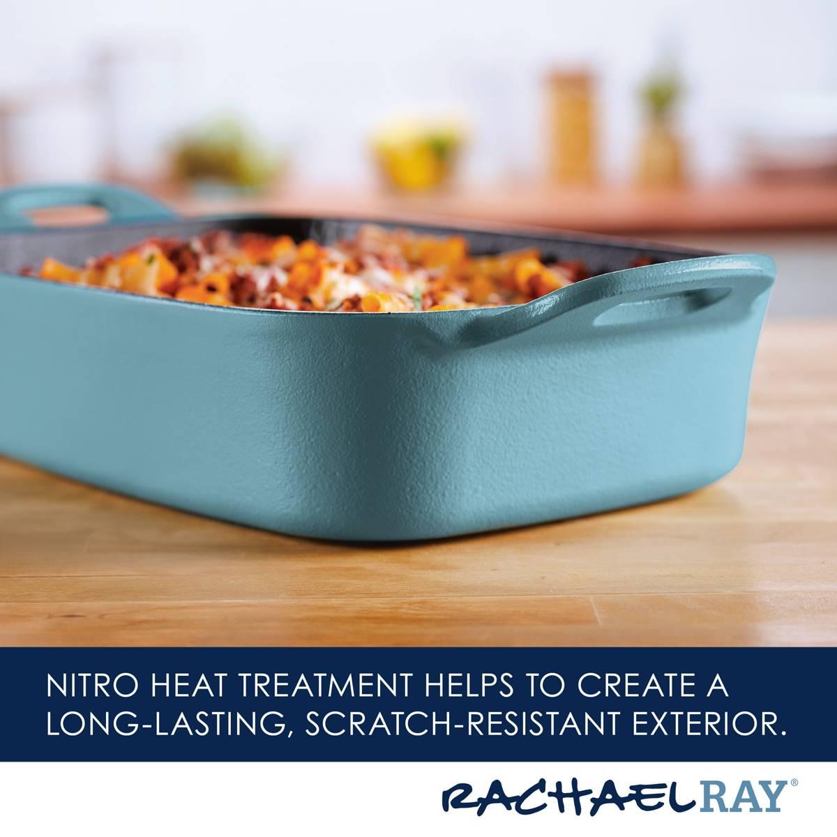 Meet your new kitchen hero! Get incredible cast iron performance that´s easy to maintain with this Rachael Ray NITRO Cast Iron Roasting Pan that delivers the classic durability and performance of cast iron without the hassle of complicated cleaning, making this 9-inch x 13-inch meal maker ideal for use as a lasagna pan, casserole pan, or roaster. A next-generation NITRO heat treatment seals and smooths surface for amazing, easy-to-use, easy-to-clean cast iron that´s fortified to resist rust, chipping, and staining but still holds brilliant colors to complement any kitchen style. Induction capable and made to last a lifetime (and look great for a lifetime, too), this durable cast iron roasting pan is pre-seasoned and ready to deliver. See why cast iron is one of Rachael´s favorite ways to make meals even more delish.