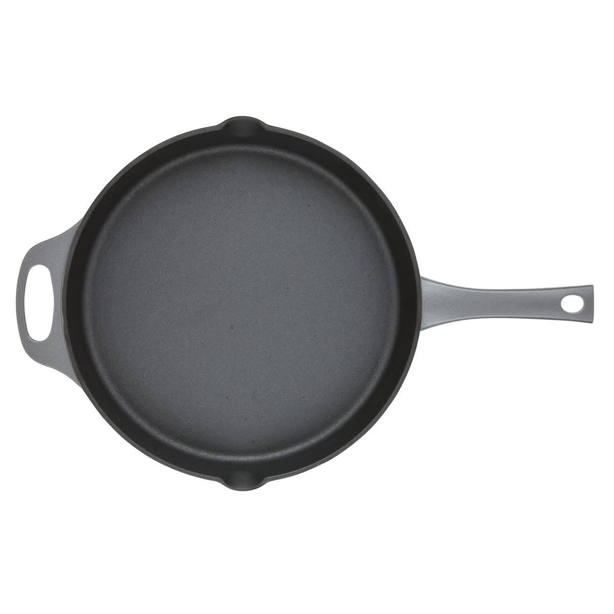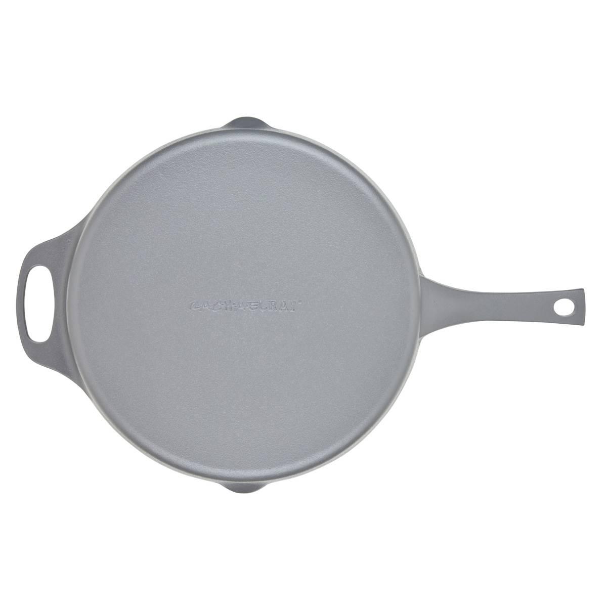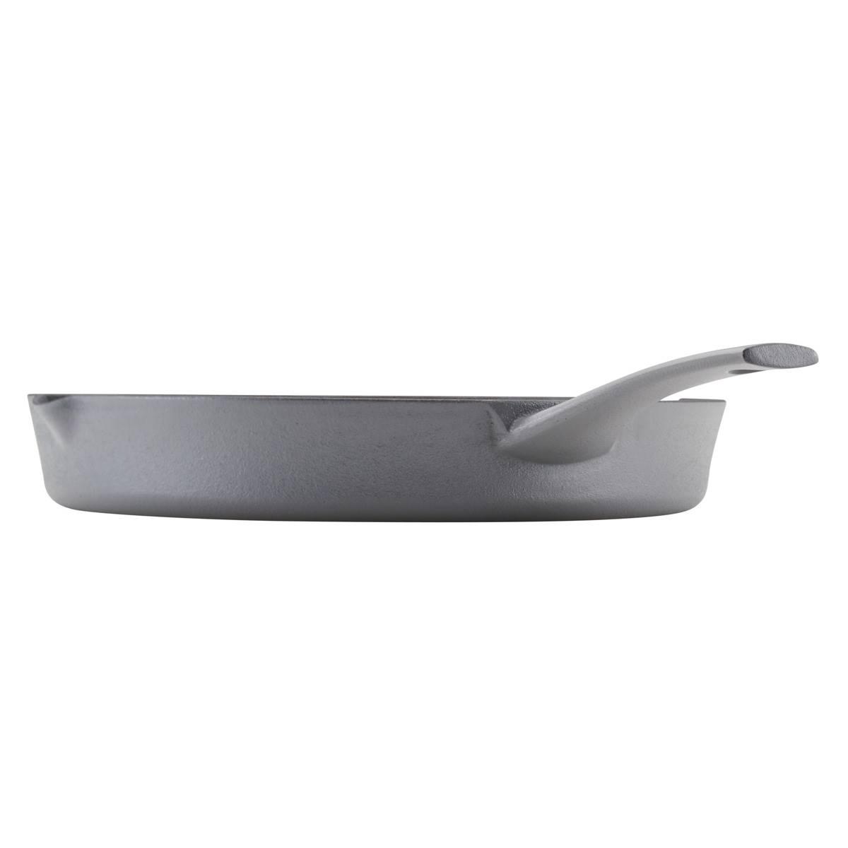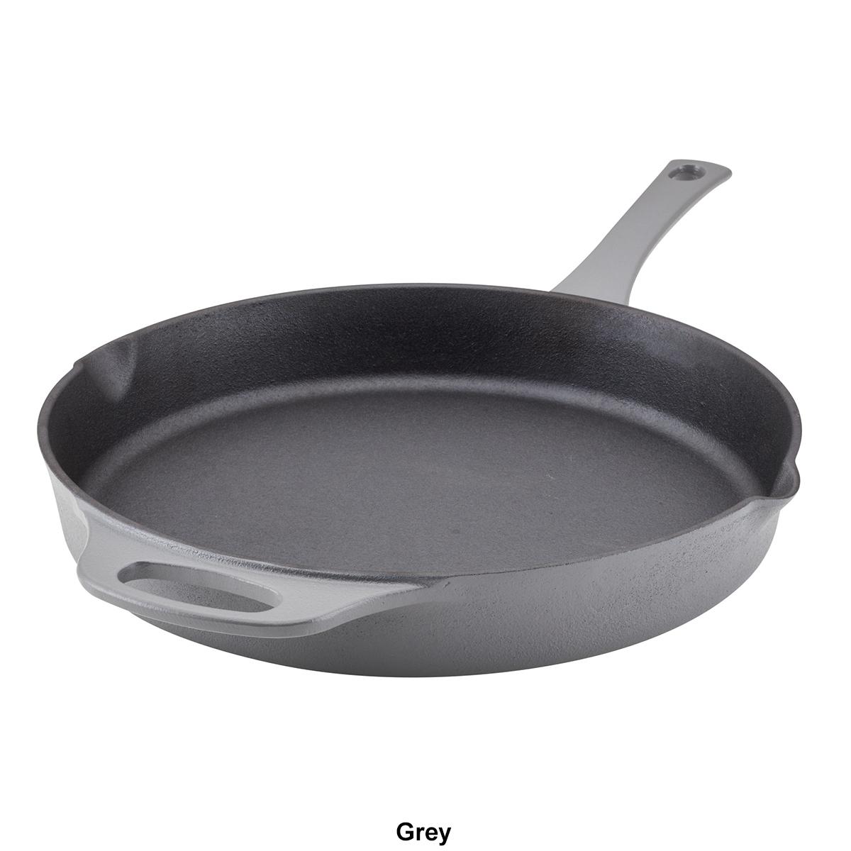 Meet your new kitchen hero! Get incredible cast iron performance that´s easy to maintain with this Rachael Ray NITRO Cast Iron Skillet that delivers the classic durability and performance of cast iron without the hassle of complicated cleaning. A next-generation NITRO heat treatment seals and smooths surface for amazing, easy-to-use, easy-to-clean cast iron that´s fortified to resist rust, chipping, and staining. Wash it, scrub it, and crank it up on the stovetop or in the oven! This extra roomy 12-inch cast iron frying pan features a helper handle for all of your stove-to-oven recipes and built-in spouts for easy pouring, and the satiny-smooth NITRO finish holds brilliant colors to complement any kitchen. Induction capable and made to last a lifetime (and look great for a lifetime, too), this durable meal maker is pre-seasoned and ready to deliver. See why cast iron is one of Rachael´s favorite ways to make meals even more delish.
