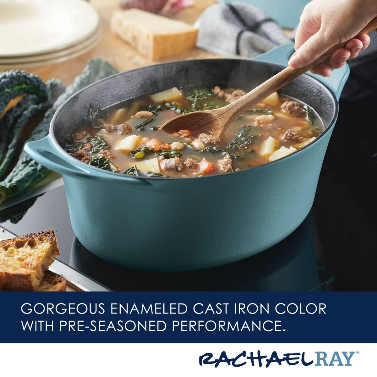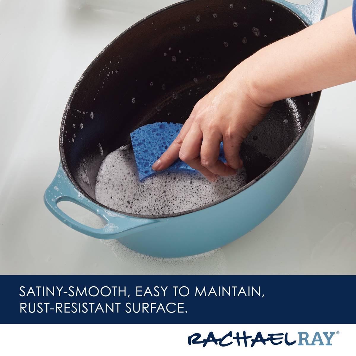 Meet your new kitchen hero! Get incredible cast iron performance that´s easy to maintain with this Rachael Ray NITRO Cast Iron Dutch Oven that delivers the classic durability and performance of cast iron without the hassle of complicated cleaning. A next-generation NITRO heat treatment seals and smooths surface for amazing, easy-to-use, easy-to-clean cast iron that´s fortified to resist rust, chipping, and staining. Wash it, scrub it, and crank it up on the stovetop or in the oven! This extra roomy 6.5-quart Dutch oven is a recipe ready for braising, slow-cooking, and amazing stove-to-oven-to-table recipes, and the satiny-smooth NITRO finish holds brilliant colors that complement any kitchen. Induction capable and made to last a lifetime (and look great for a lifetime, too), this durable meal maker is pre-seasoned and ready to deliver. See why cast iron is one of Rachael´s favorite ways to make meals even more delish.