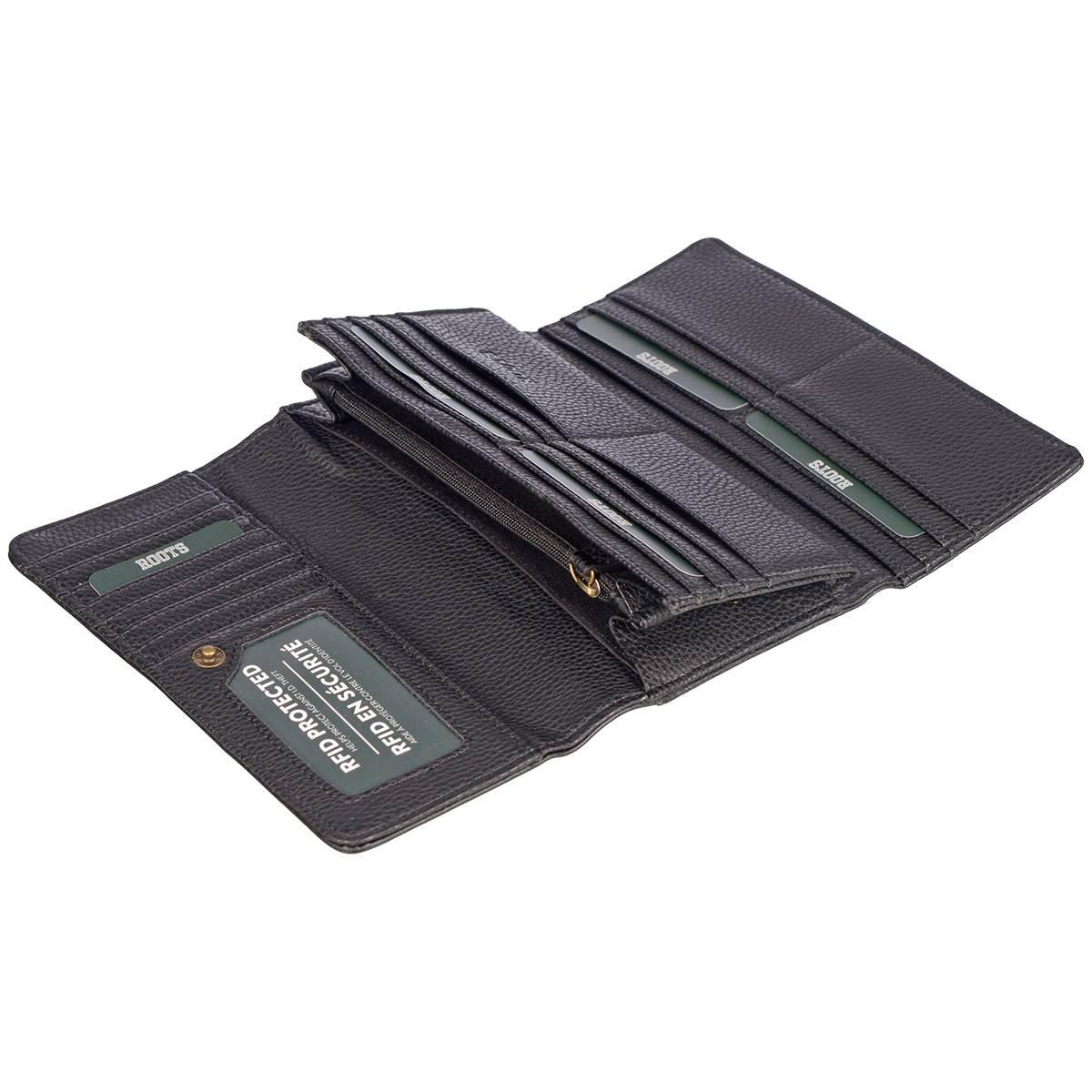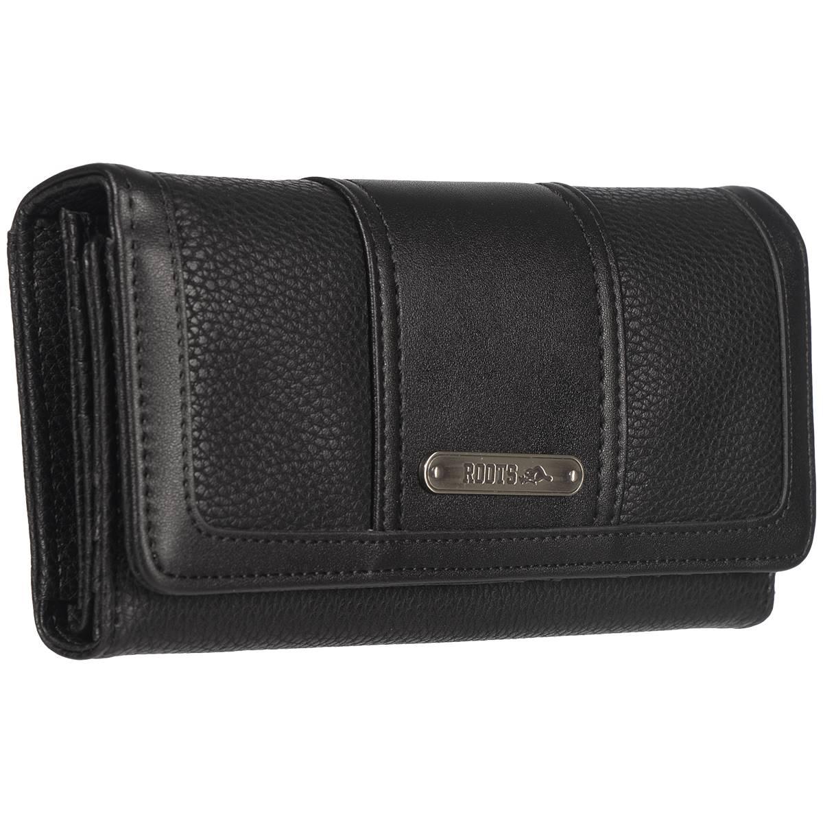 Description The Womens Roots 73 RFID ultimate pocket clutch wallet is sure to keep you organized. This wallet features 21 credit card slots, an ID window, 2 gusset pockets, and a...