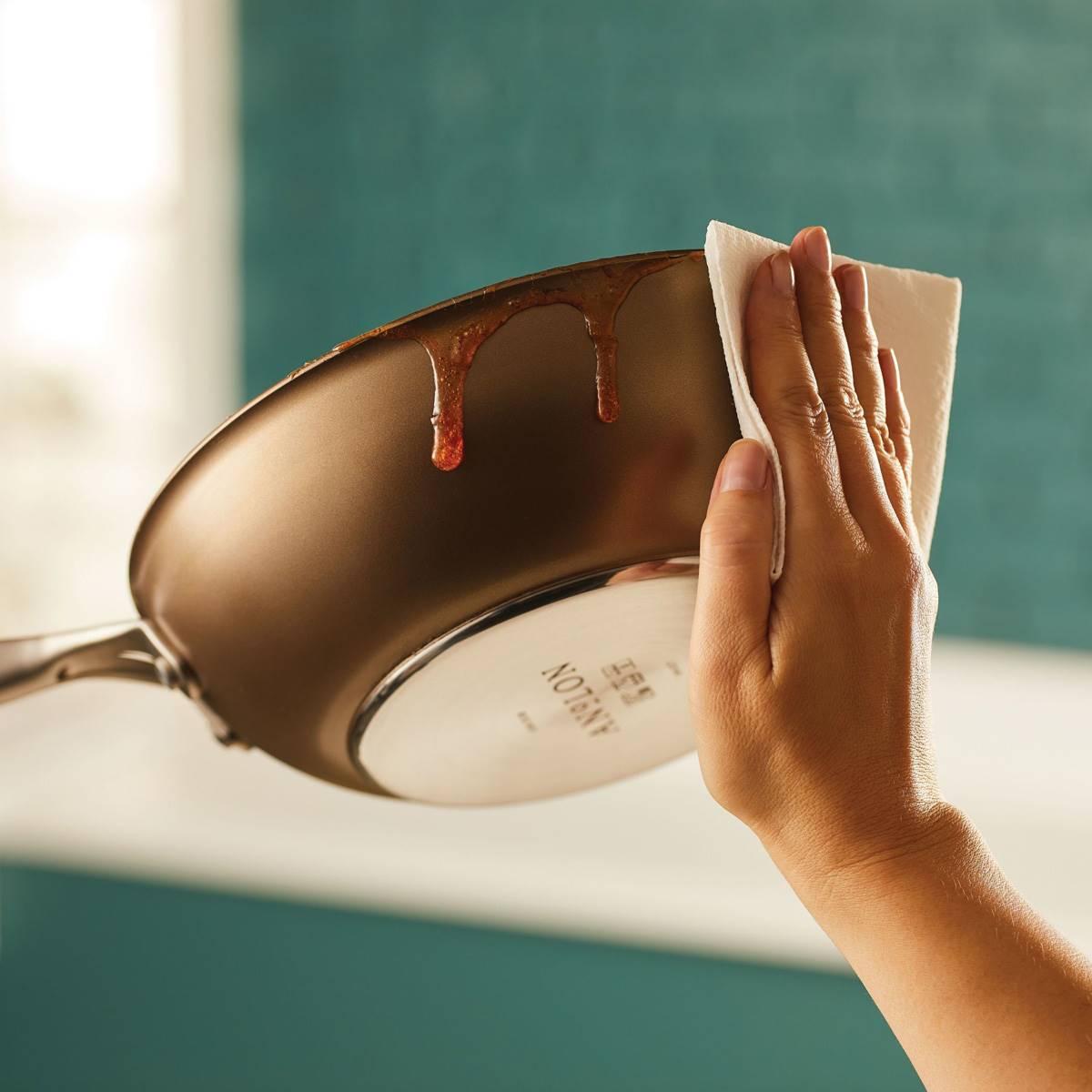 Elevate your cooking experience to new heights with Anolon® Ascend hard anodized nonstick cookware. This impeccably designed nonstick stir fry pan features an extra-reinforced nonstick finish inside and out that withstands scratching, chipping, peeling, and wear. Tough, hard-anodized aluminum construction with a thick, edge-to-edge stainless steel base delivers fast, even heat, and unlike ordinary nonstick woks and stir fry pans, is engineered to keep oil in the middle, directly under foods so they don’t stick for incredibly even cooking. For home chefs who don’t hold back, this versatile cooking wok is oven safe to 500°F and suitable for all stovetops, including induction, and features traditional sloped sides for tossing, sautéing, and stir-frying at high heat. Cook to fulfillment with a comfortable, two-tone, stay-cool handle that has completely flush double rivet connections and a dishwasher-safe, inside-out nonstick that easily wipes clean to keep your cookware looking like new.