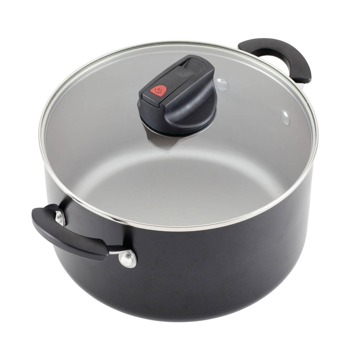 • In Control Cookware: Farberware® Smart Control pots and pans feature a tempered glass lid with an innovative vent in the knob for easy steam release and fewer boil-overs.