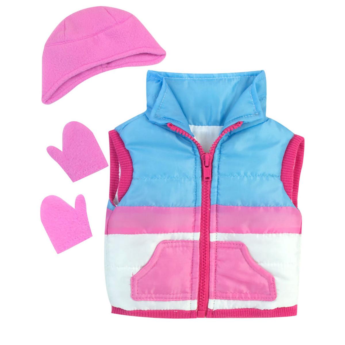 Give your little one fun accessories for dressing up their doll for the snow with the Sophia’s® by Teamson Kids winter accessories and inner tube set. This set includes a multicolor vest, pink hat, mittens, and polar bear inner tube for a colorful set your little one will love. These trendy accessories encourage your little one to use their imagination while playing.