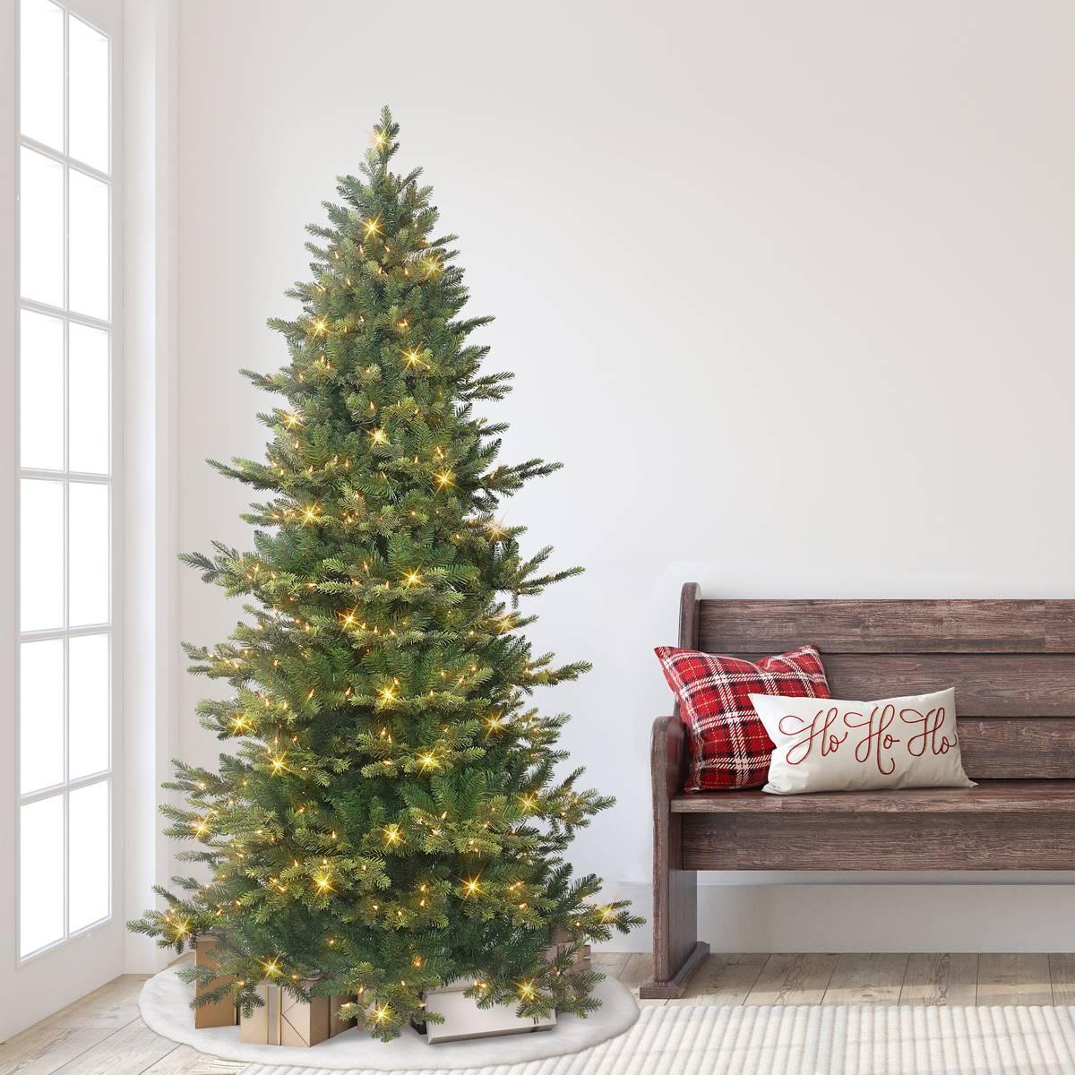 The flame retardant and hypoallergenic materials make it a safer choice when compared to a real tree. Hinged branches are quick and easy to shape, ready to be decorated with your favorite ornaments. Its slim profile is ideal for smaller spaces.