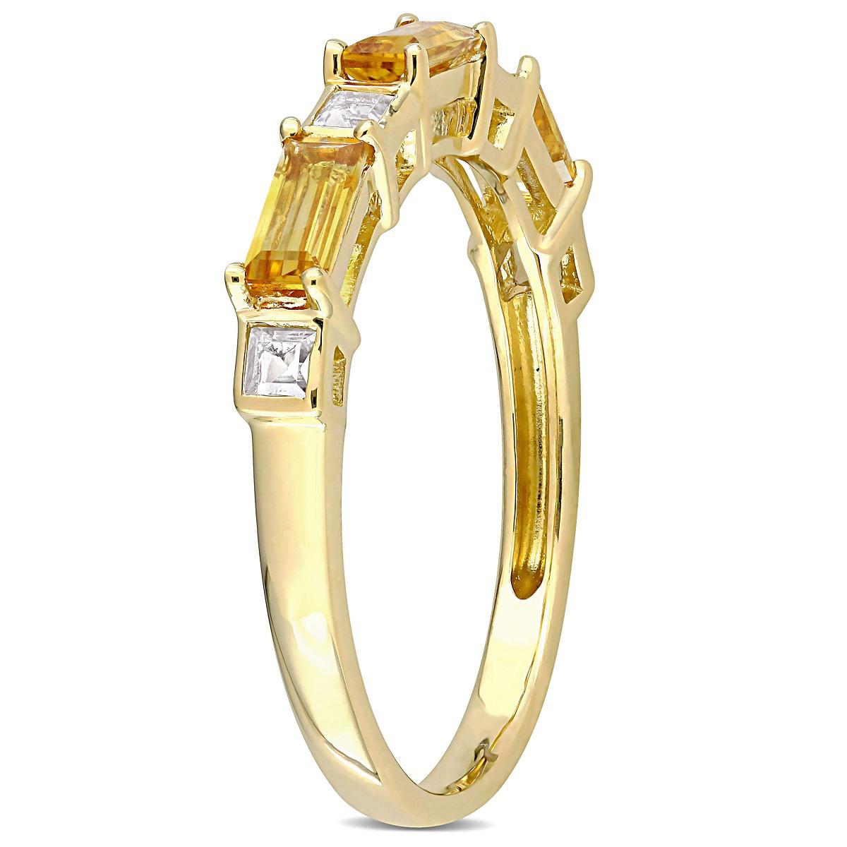 Description This stacking Gemstone Classics™ three-stone anniversary ring is crafted in 10kt. yellow gold. The pretty wedding ring features alternating baguette-cut citrine and...