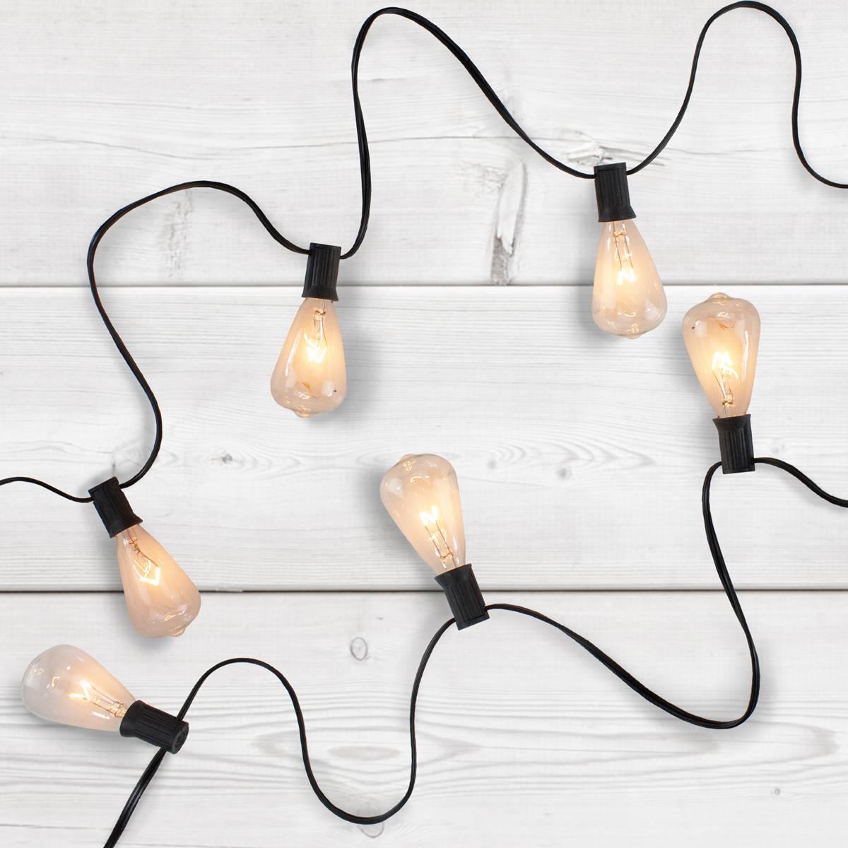 Add some light to your life with this Northlight Seasonal edison glass Christmas patio light set. The easy glow is sure to bring some sparkle to your Christmas tree garland or wreath. These universal lights can also be used at a wedding in a bedroom or to light your railings. Contains end-to-end connectors which allow you to connect multiple sets together (not to exceed 210 watts).