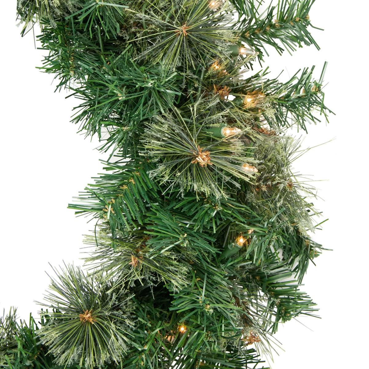 This Northlight Seasonal Cashmere Pine artificial Christmas wreath offers traditional foliage with a luxurious touch. Featuring classic PVC with lush cashmere needles that create depth and fullness. The wreath comes with a sturdy double metal frame that is ready for hanging. Contains 1 plug with end connector which allows you to stack multiple lighted items together (not to exceed 210 watts).