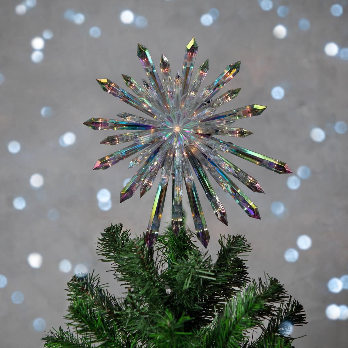 Description This Northlight Seasonal 14-inch icicle Christmas tree topper is anything but ordinary. The iridescent prism crystals cast a unique colorful glow. It is the perfect...