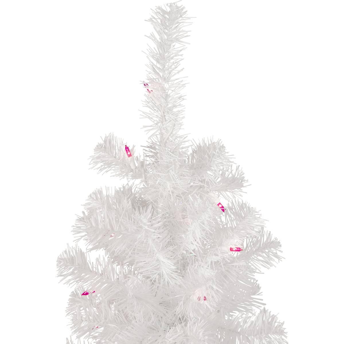 This Northlight Seasonal 4-foot pre-lit flat-round tips wrapped tree adds a retro feeling to any holiday décor. The lush needles and slim profile give the tree fullness but it is ideal for small spaces and fits perfectly in corners. The branches are made from white PVC mixed with iridescent tinsel needles.