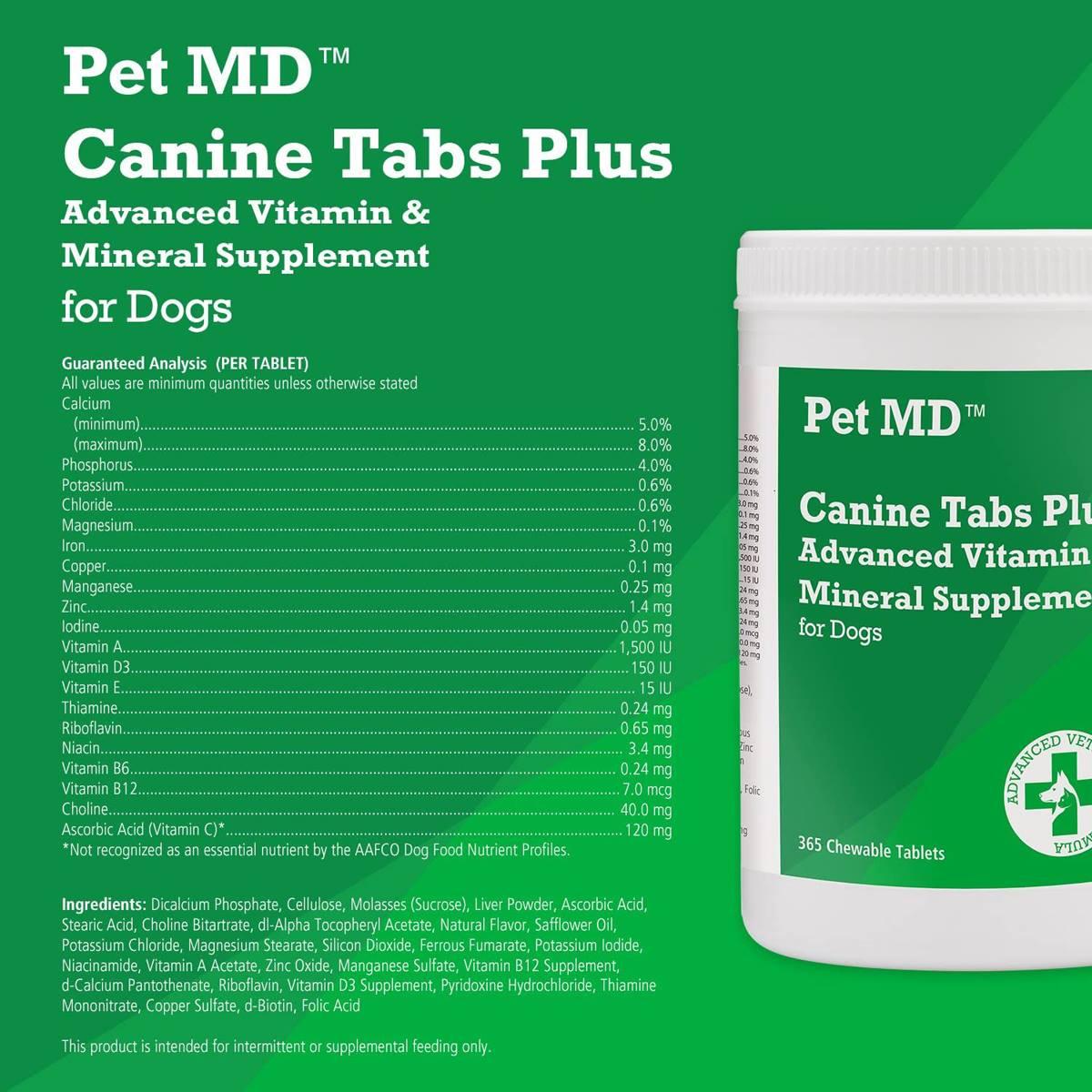 Description Pet MD™ 365-count canine tabs plus advanced vitamin and mineral supplement is an advanced dietary source of vitamins and minerals for all the necessary nutrients to...