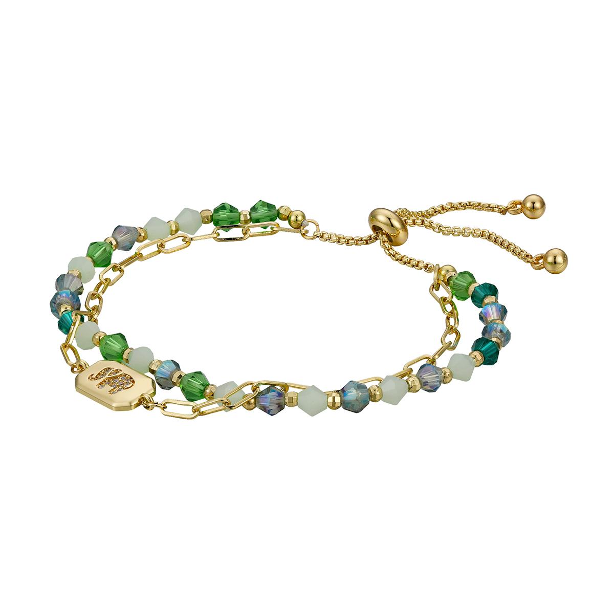 This Shine 76mm brass gold cubic zirconia elephant multi-green and grey bicone crystal double-strand bolo bracelet will become a staple in your wardrobe.