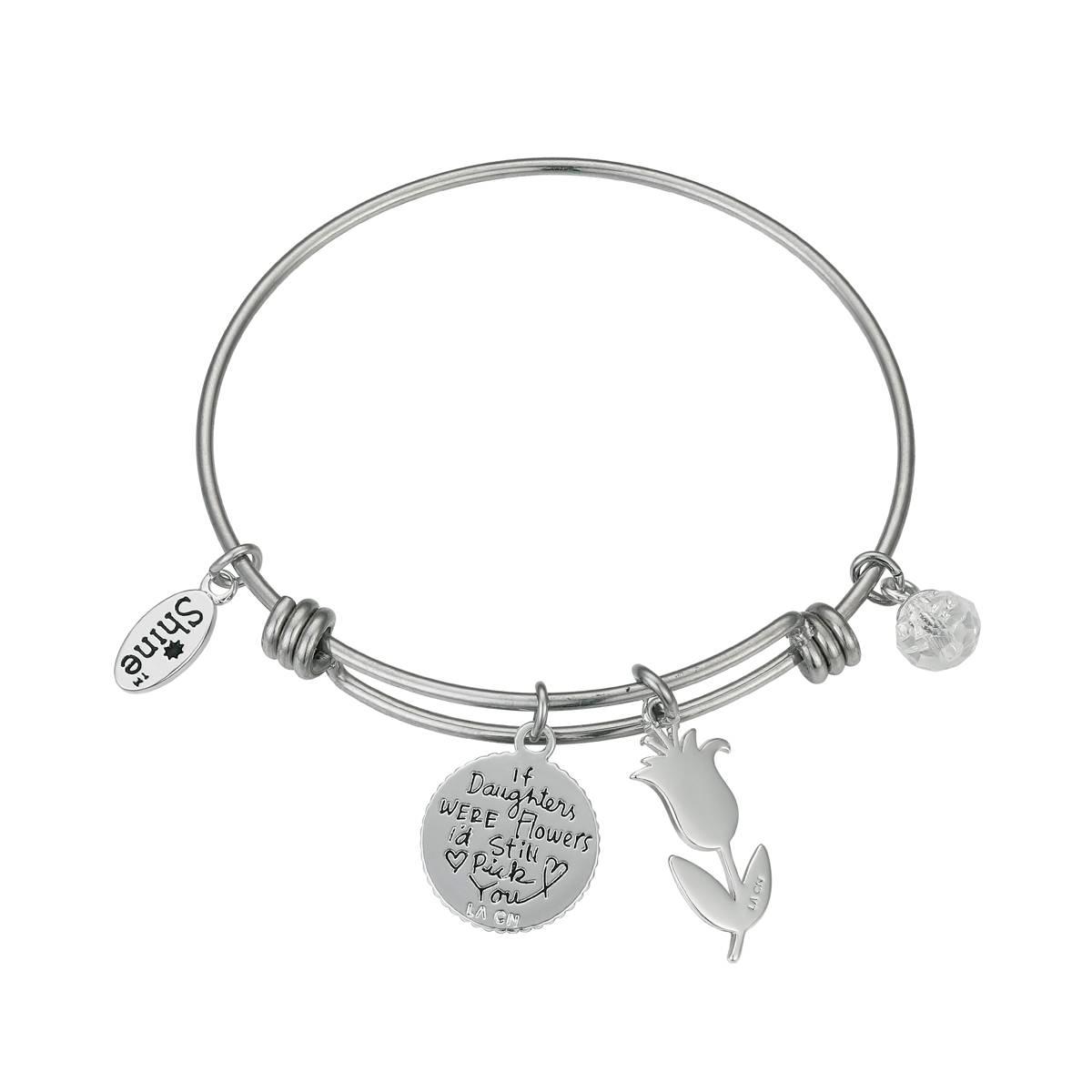 Show your daughter how much you love her with the Shine 2.5-inch brass "If daughters were flowers I´d still pick you" flower crystal rose gold two-tone bangle bracelet.