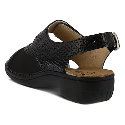Description These Womens Flexus® by Spring Step Aksamala slingback wedge sandals showcase premium python embossed leather uppers with 3 adjustable and detailed straps with a...