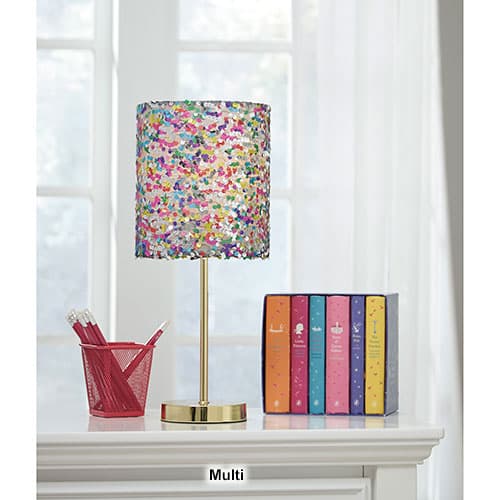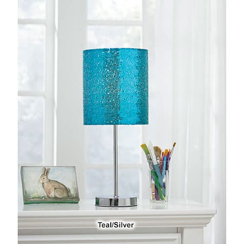 The Signature Design by Ashley Maddy metal table lamp is about the glam factor. Its sequined drum shade in teal, lights up your room in style and the silver tone metal base is a classy touch to this glitzy design. It has an on/off switch and it requires a Type A Bulb (not included) that is 60 watts max or 13 watts max CFL.