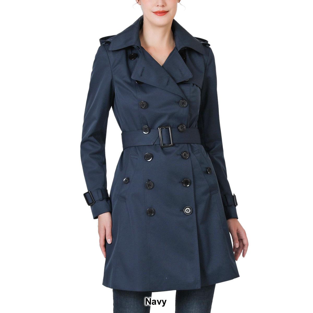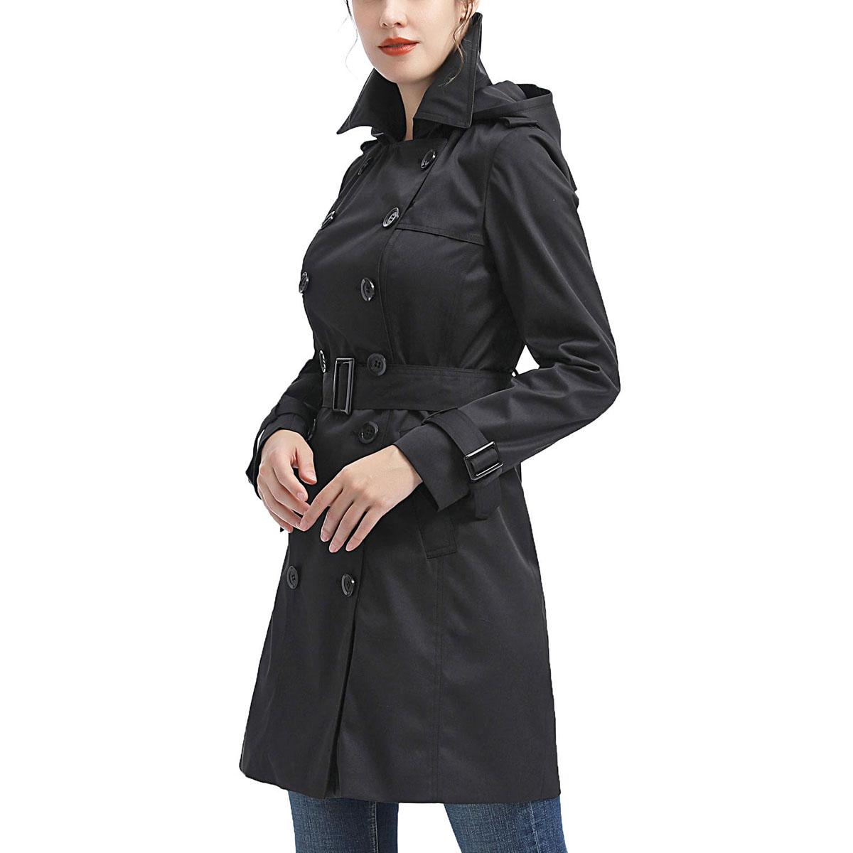 Description Stay comfy and warm this season with this Womens BGSD waterproof classic hooded trench coat. Features storm flap in the back, hook-and-eye collar, two exterior...