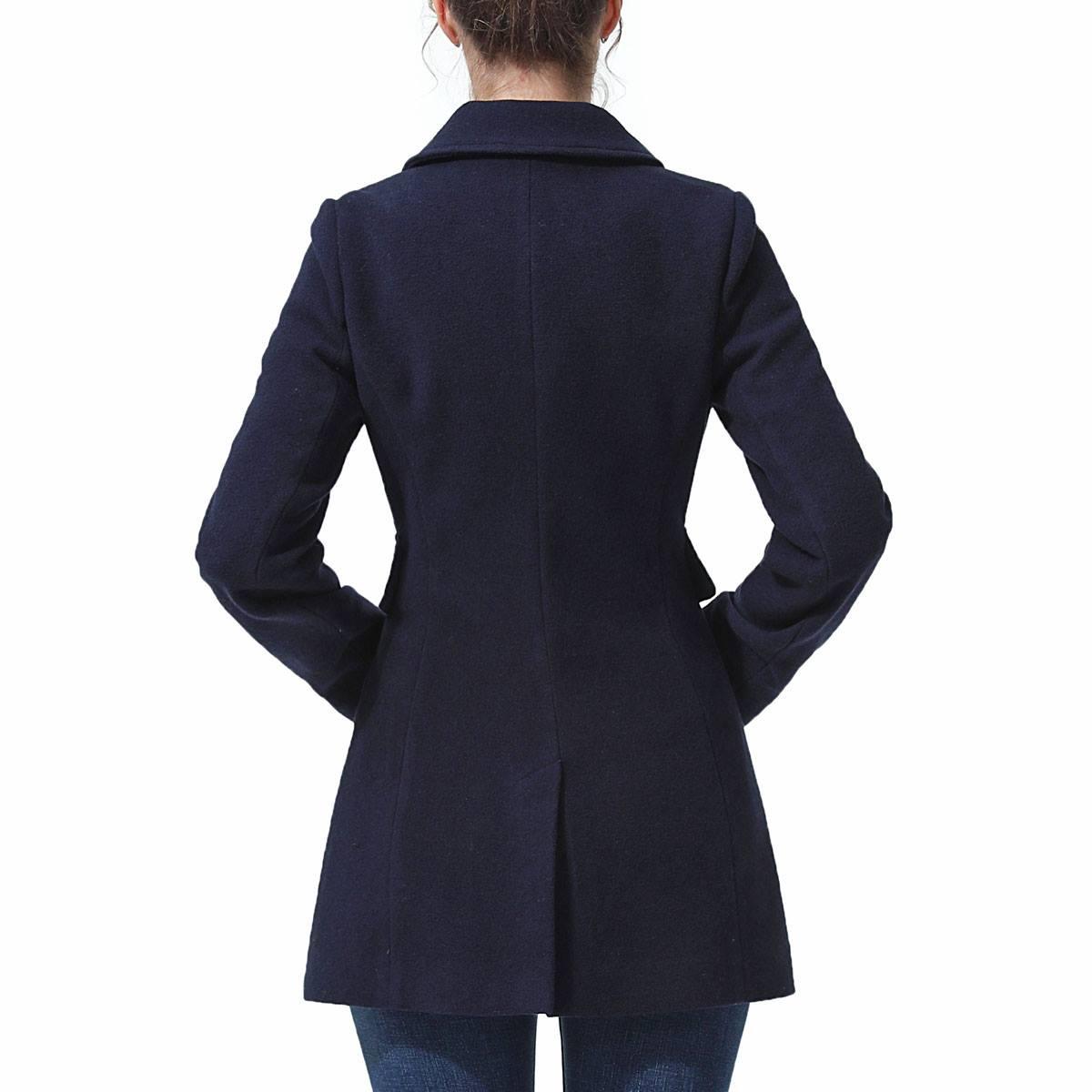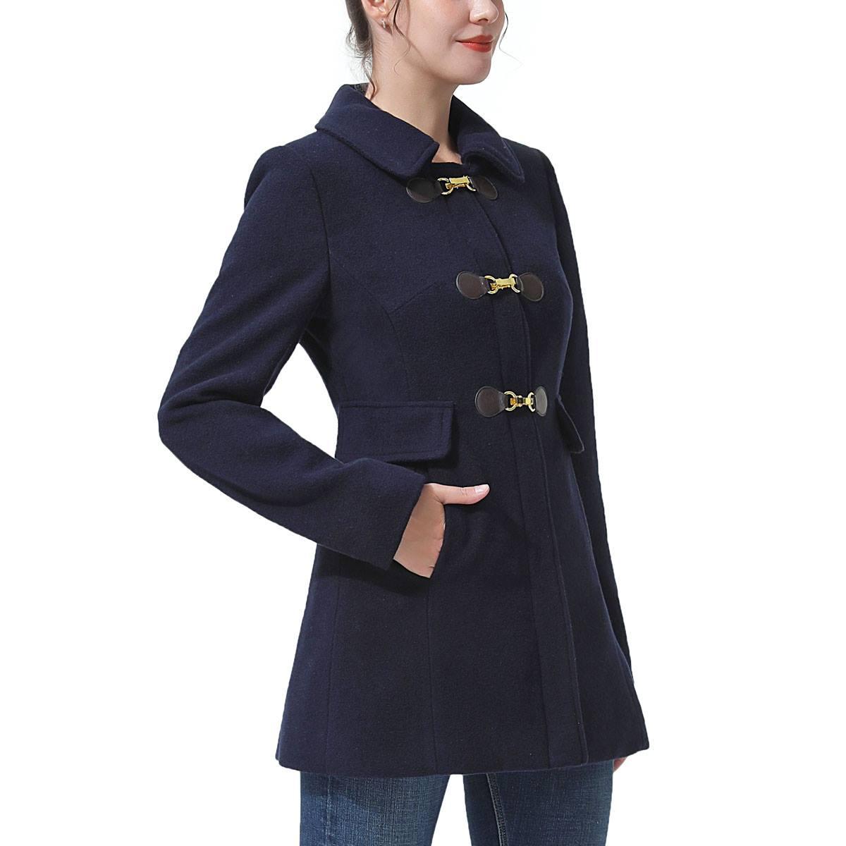 This Womens BGSD toggle wool coat will give your outfit a sophisticated update. Features include a hidden front zip, snap closure storm flap as well as decorative flaps, two on-seam pockets, and two interior pockets. Perfect for the season!