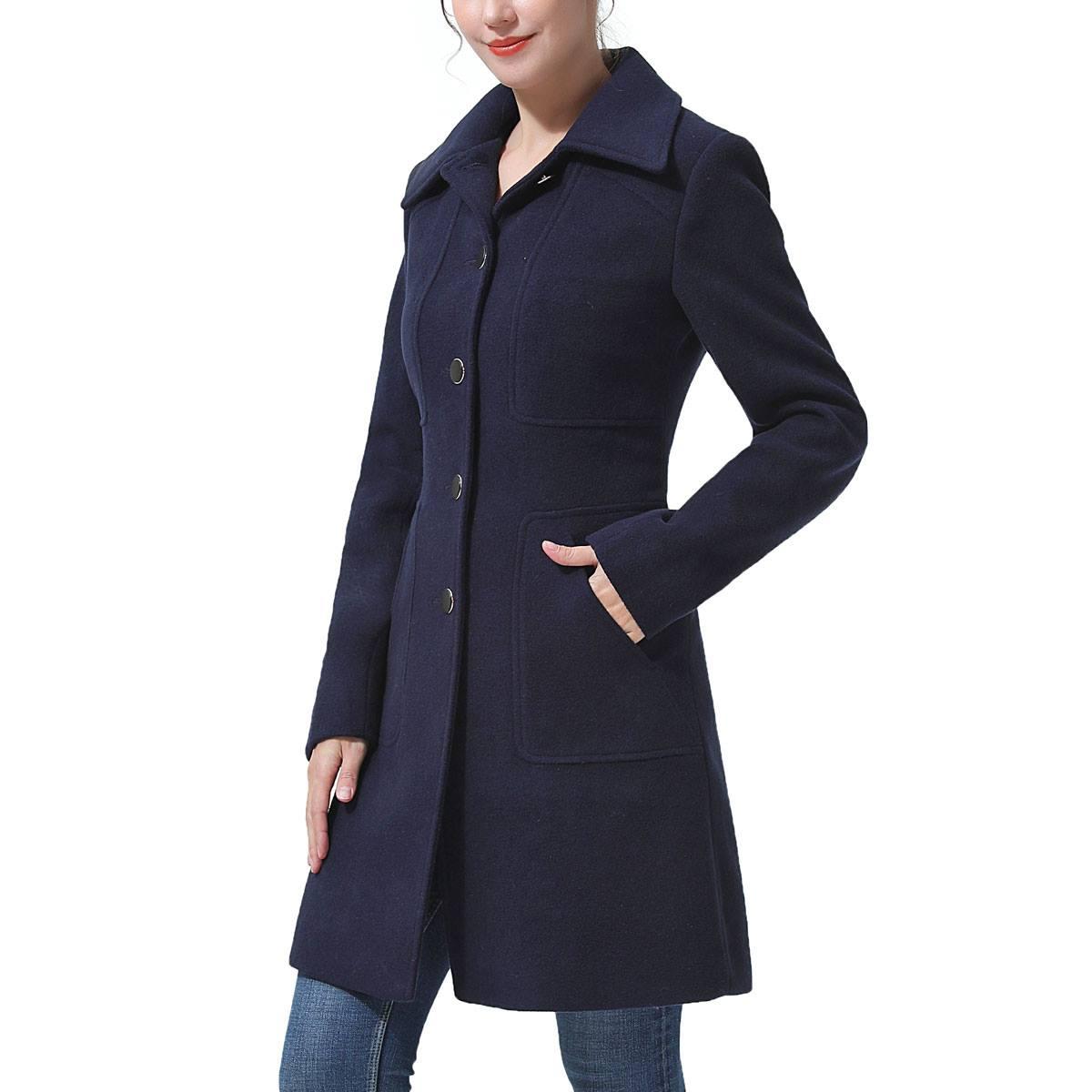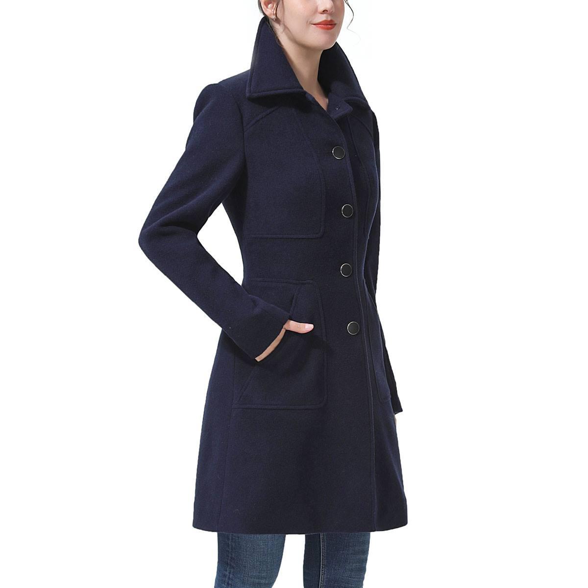 Description Bring a classic look to your outfit with this Womens BGSD wool walking coat. Features black gold trim buttons that create a classic accent. Designed with a wool blend...