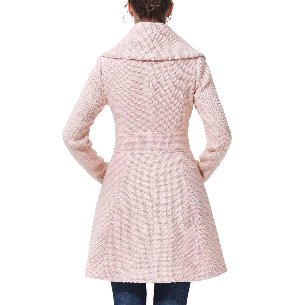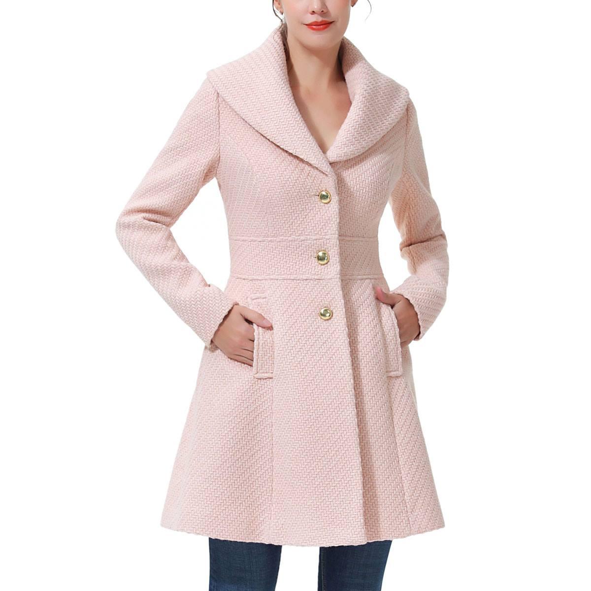 This Womens BGSD fit & flare boucle wool coat proves that you can bundle up in style! The feminine style provides ample warmth while framing the face with a shawl collar and cinches your waist with contour banding. Featuring single-breasted button front closure, two on-seam hand pockets, and two interior pockets.