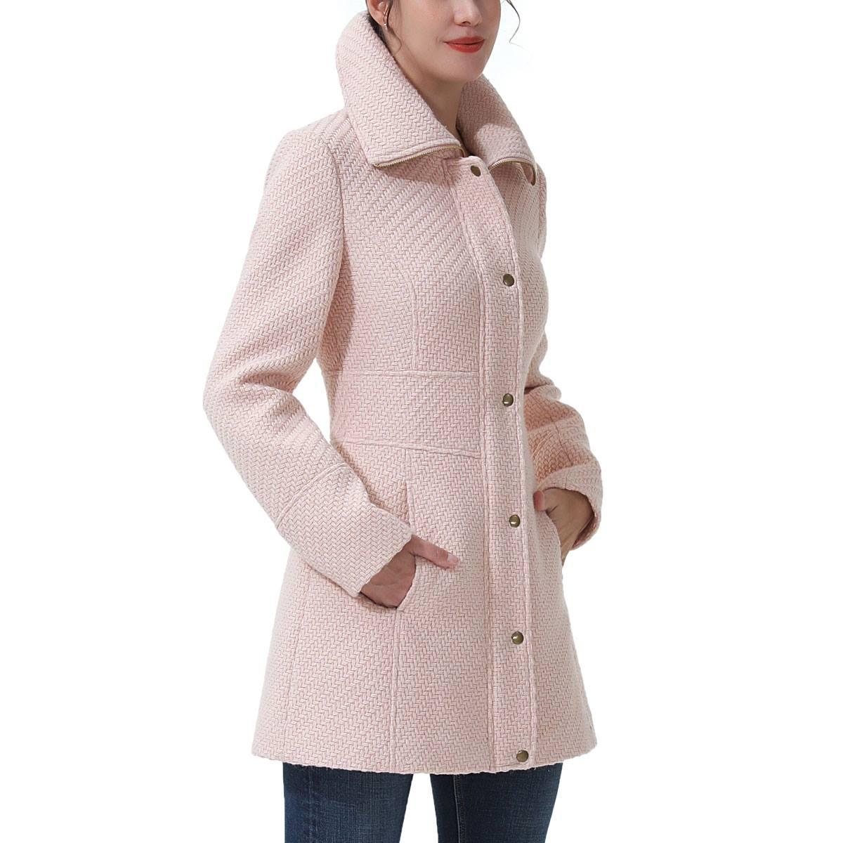 Bundle up in this Womens BGSD boucle wool walking coat. Elegant seaming details and gold-tone hardware upgrade this look and make this coat the perfect addition to your wardrobe. Featuring hidden zip closure with a snap placket, spread collar, two exterior pockets, and two interior pockets.