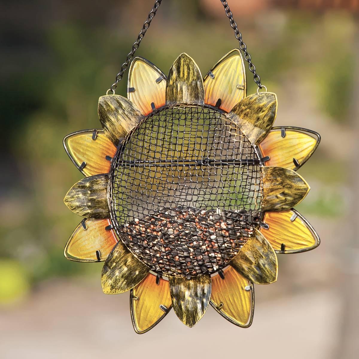 Attract more of your feathered friends with this Evergreen sunflower bird feeder with perch. This bird feeder combines functionality and beauty and will fit in perfectly with your outdoor space. Its mesh design allows for easy access for birds seeking nourishment as they travel from near and far. The design will bring color and life to your home as it shines and sparkles in the sunlight. The design includes a shepherd´s hook for easy display.