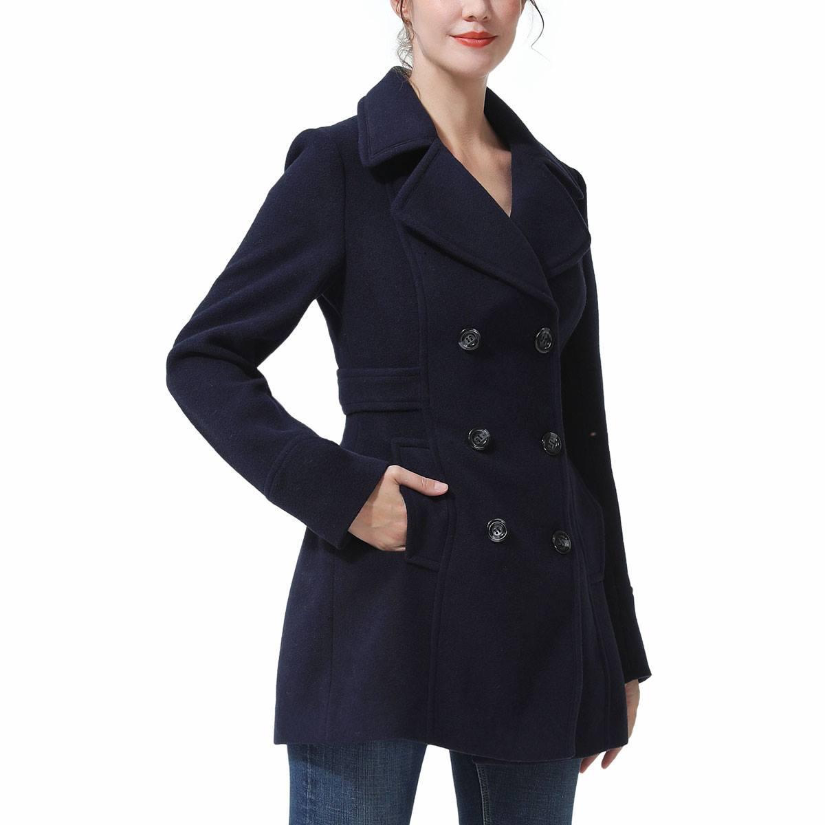 Description This Womens BGSD Classic double-breasted wool coat with signature large lapels and marbled buttons for a modern look. Empire inset seaming, split-lapel collar, and...