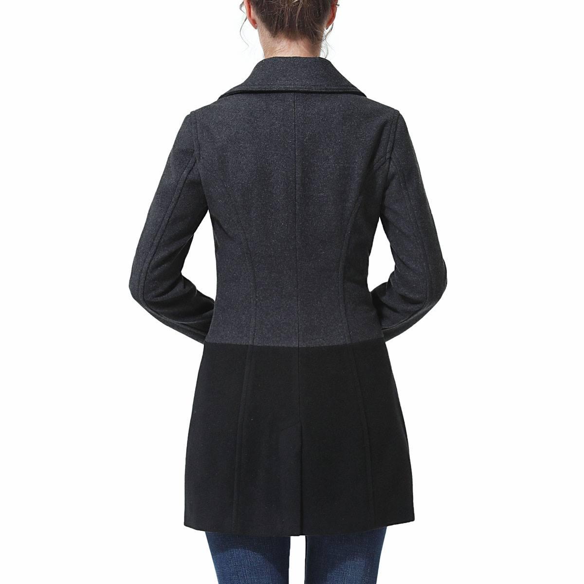 Description Be ready for the cold weather with this Womens BGSD color block wool peacoat. Features princess seams for a slimming look and tailor look in addition to a center back...