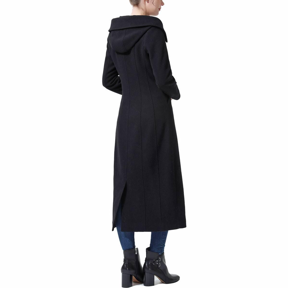 Description Stay warm and cozy with this Womens BGSD hooded full-length wool coat. Features figure-hugging contours and princess seams to give a flattering appearance....
