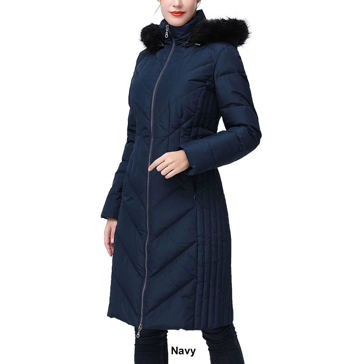 Description Be ready for the cold weather with this Womens BGSD waterproof hooded long-down coat. The chevron patterned front quilting and narrow vertical side quilting give this...