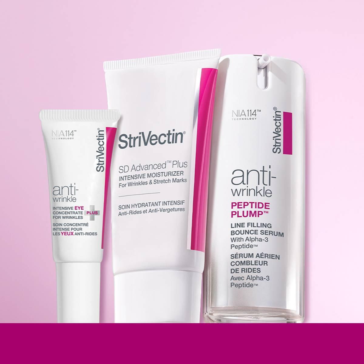 This high-performance trio is supercharged by NIA-114™ to target signs of aging on the eyes, face, and body for healthy, younger-looking skin. Our #1 anti-wrinkle moisturizer** now targets 10 types of skin-boosting collagen to minimize the appearance of wrinkles and stretch marks. For the delicate skin around the eyes, we upgraded our best-selling, wrinkle-smoothing eye cream to start seeing younger-looking eyes in just 5 days*. Even deep, stubborn wrinkles don´t stand a chance with our high-tech melting serum formulated to transform skin fast.UPGRADED with NEW SD Advanced™ Moisturizer & Peptide Plump™ Serum.The Power Starters Anti-Wrinkle Trio Contains: