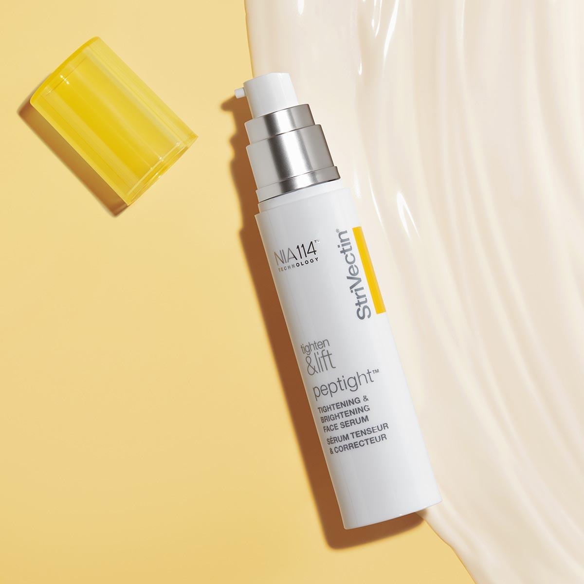 The StriVectin Peptight™ Tightening & Brightening Face Serum, upgraded! This dual-focus formula is more potent than ever with tetrapeptides, hexapeptides, and botanical tensors to visibly tighten and firm the skin for more sculpted-looking contours, as well as naturally derived-brighteners to help even tone and restore radiance.