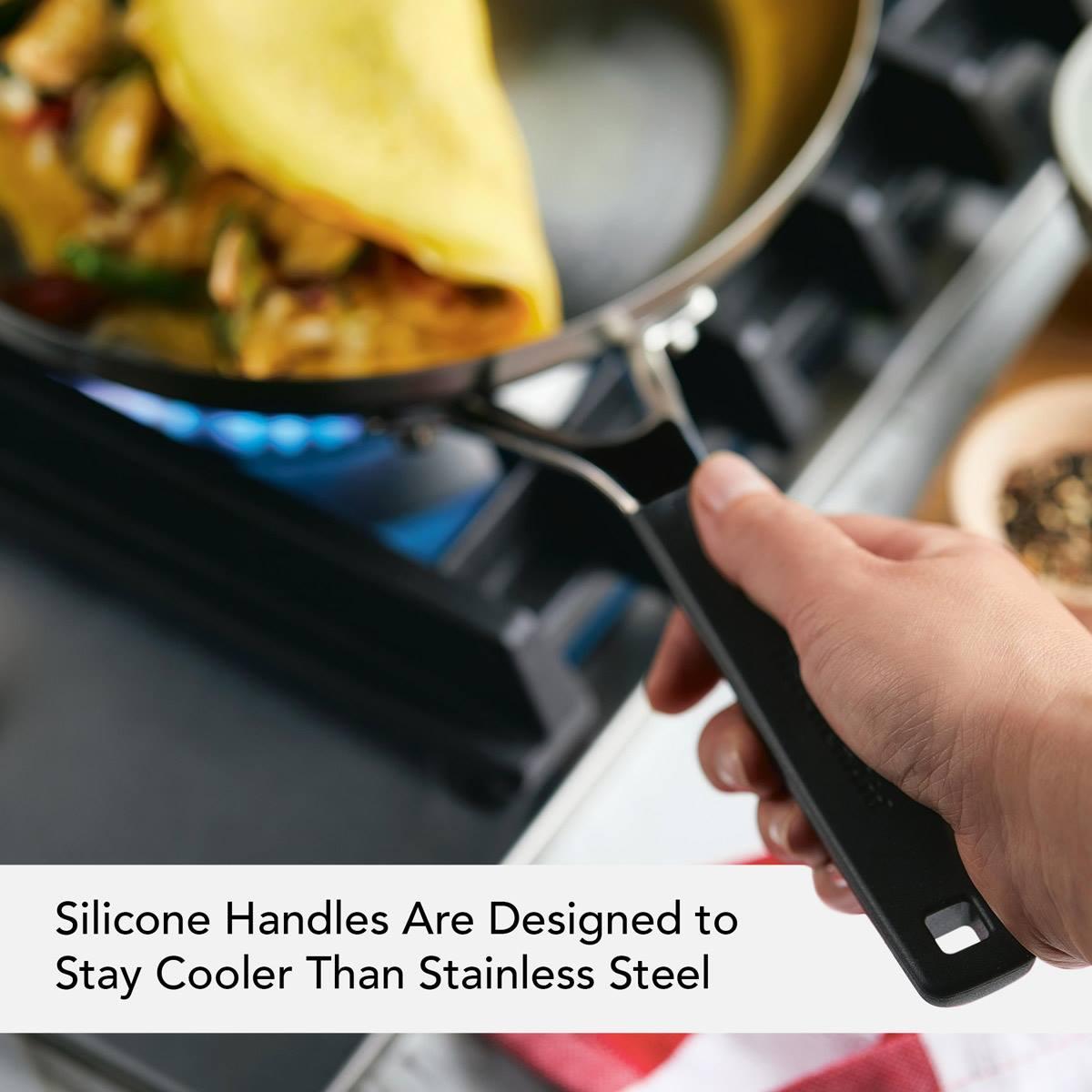 Ignite kitchen creativity and experience rich flavor with the KitchenAid® 12-inch stainless steel frying pan. Designed to heat quickly and evenly to cook entrees and sides to perfection. The stainless steel handle has been finished with a silicone grip for a cooler handle while cooking. Dishwasher safe for quick, easy cleanup and oven safe to 400°F.