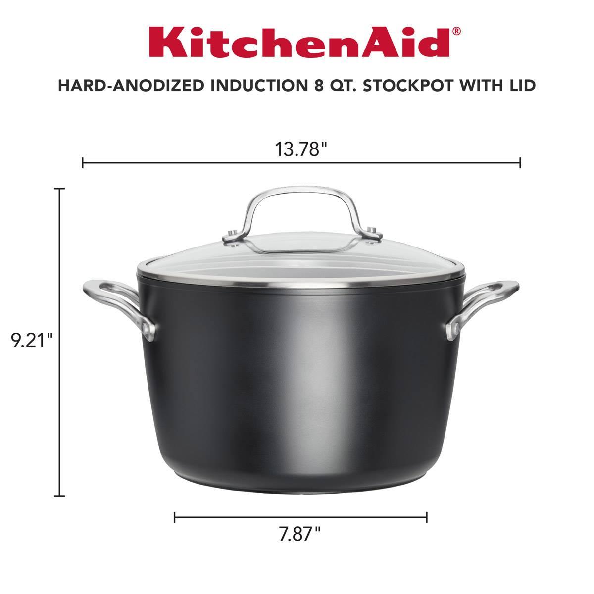Description Take control with even heat and achieve consistent results when cooking with the KitchenAid® hard-anodized induction 8-quart nonstick stockpot. The stockpot is...