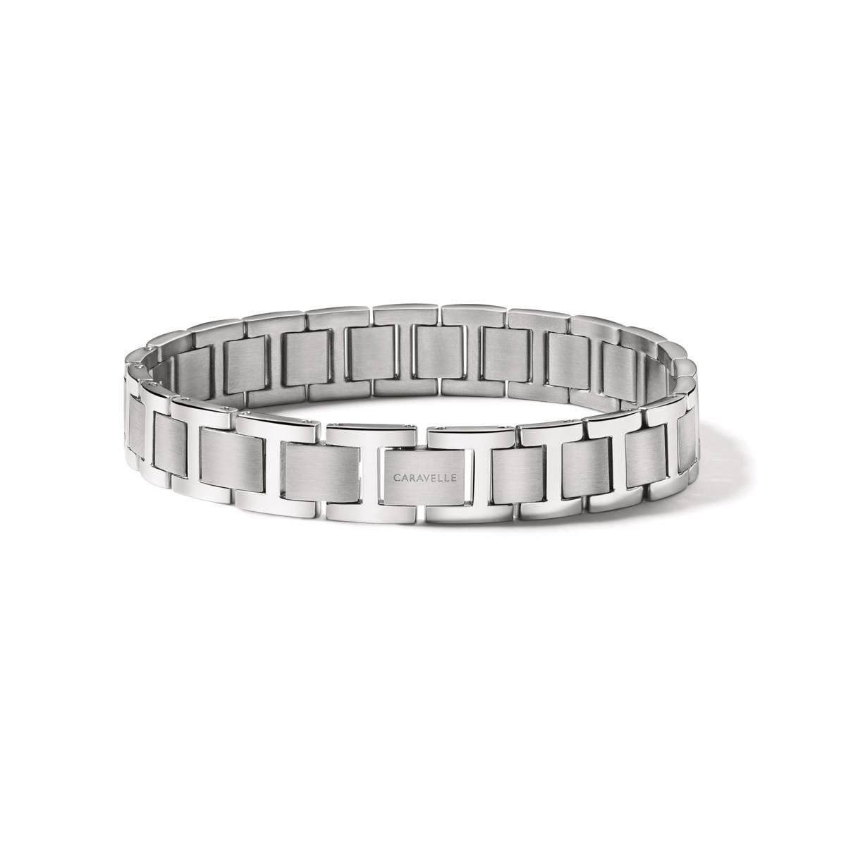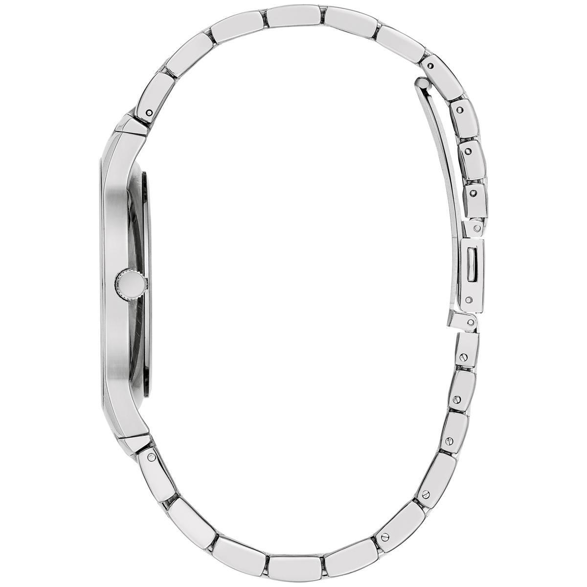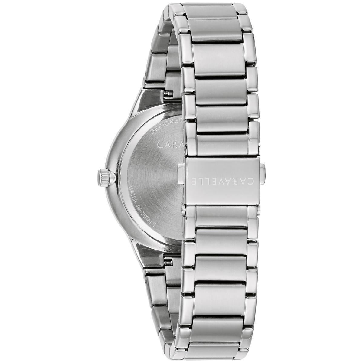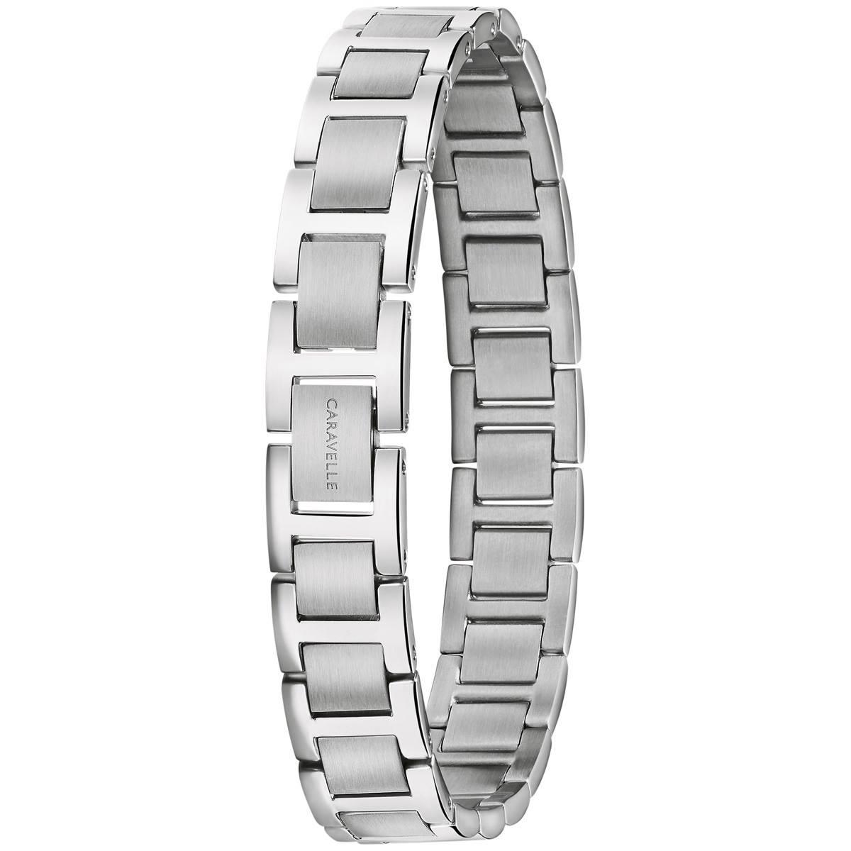 Sleek and polished define this Caravelle by Bulova gift set from the Modern collection. The timepiece includes a blue sunray dial with stainless steel markers finished with a silver-tone stainless steel case and bracelet. A silver-tone stainless steel jewelry bracelet completes the gift set with an H-link design and a jewelry buckle closure and water resistant up to 30 meters.