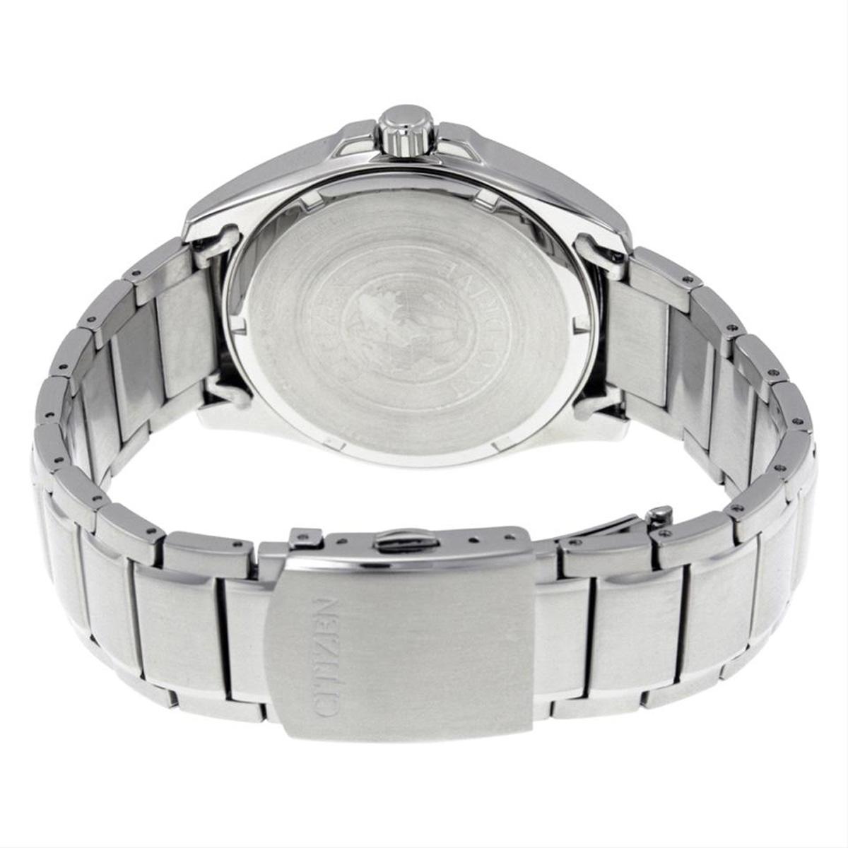 For a distinctive daytime look, this Eco-Drive® watch from Citizen® fits the bill. Crafted in stainless steel, this quality timepiece features a 43.0mm case, round black dial, luminous silver-toned hands, white numeric markers, day/date display at the three o´clock hour, and second-hand. The titanium link bracelet secures with a push-button fold-over clasp. Ensuring accuracy, the Japanese quartz movement keeps you right on time. Citizen Eco-Drive® technology harnesses the power of any light source so this style never needs a new battery. Water-resistant to 100 meters, this wristwatch includes a five-year limited manufacturer warranty