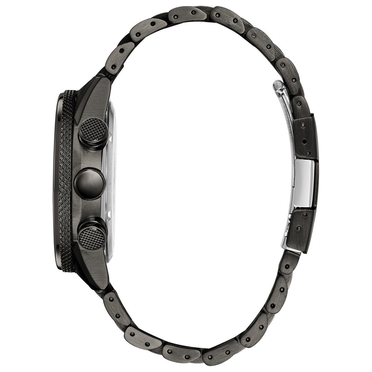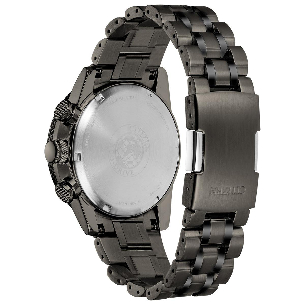 Style meets function in the Mens Citizen® Nighthawk with a sporty appeal. Designed with a granite ion plated stainless steel case and bracelet with a charcoal grey dial with red accents, the advanced features include a 1/5 second chronograph that measures up to 60 minutes, 12/24 hour time and a tachymeter that measures speed based on time traveled over a distance. This must have men’s watch also features a screw down crown, a safety foldover clasp with a push button, and water resistance to 200 meters. Made with our proprietary Eco Drive technology that’s sustainably powered by any light and never needs a battery, this versatile men’s watch becomes your weekday to weekend wardrobe staple.