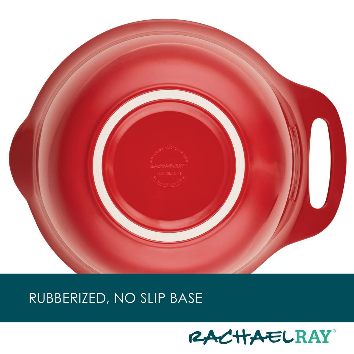 - NESTING BOWLS AND CUPS: Mixing bowls and measuring cups nest in each other for space-saving storage. ANTI-SLIP GRIP: Rubberized bottom helps to prevent melamine mixing bowls from slipping on countertops and other surfaces.