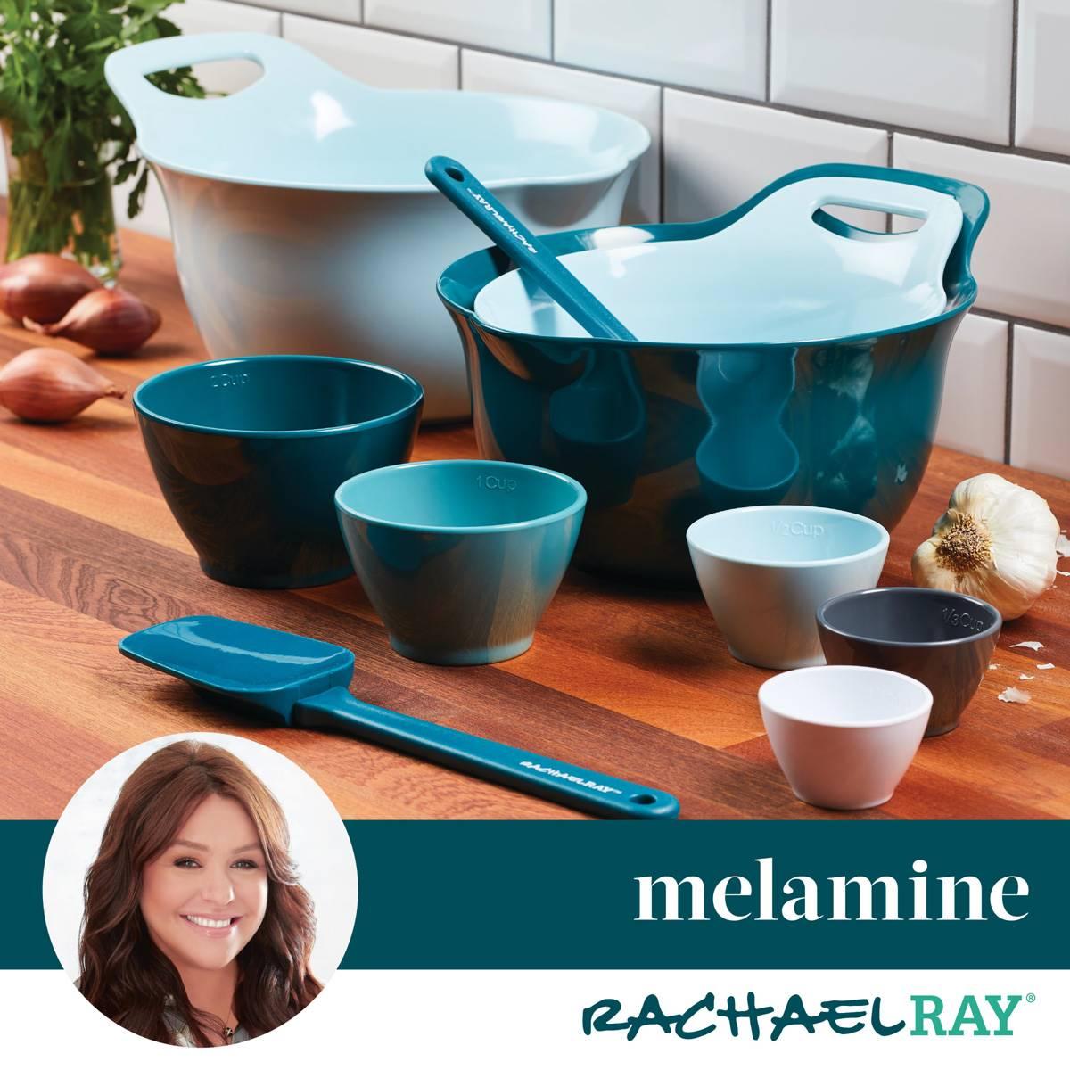 - DURABLE AND VERSATILE: Colorful Bowls, cups, and kitchen utensils are made from lightweight melamine construction for long-lasting measuring, prepping, and mixing performance.