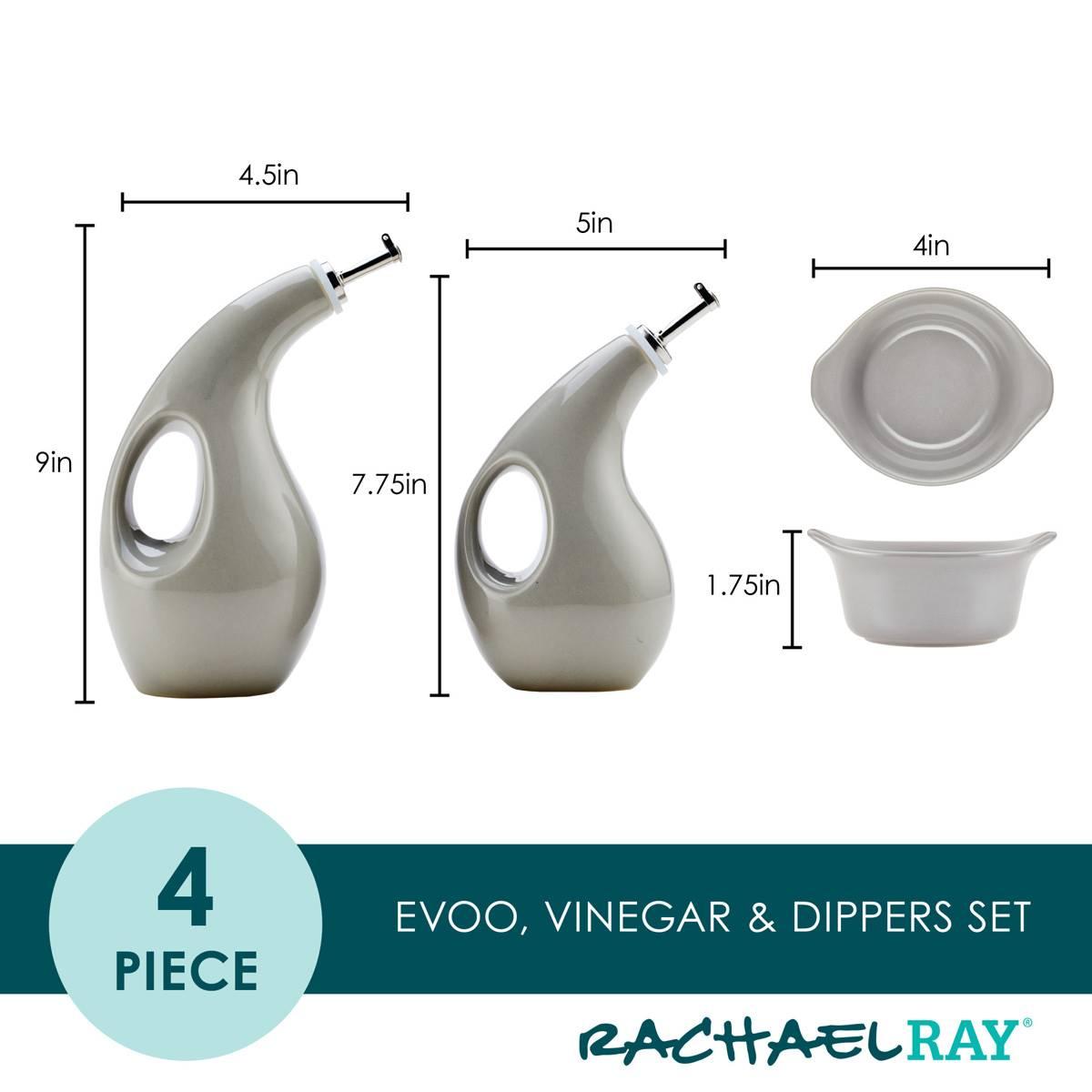Description Pour and serve with Rachael Ray’s durable, easy-to-clean, kitchen-friendly Solid Glazed Ceramics Set. This 4-piece set includes two of Rachael’s most famous EVOO...