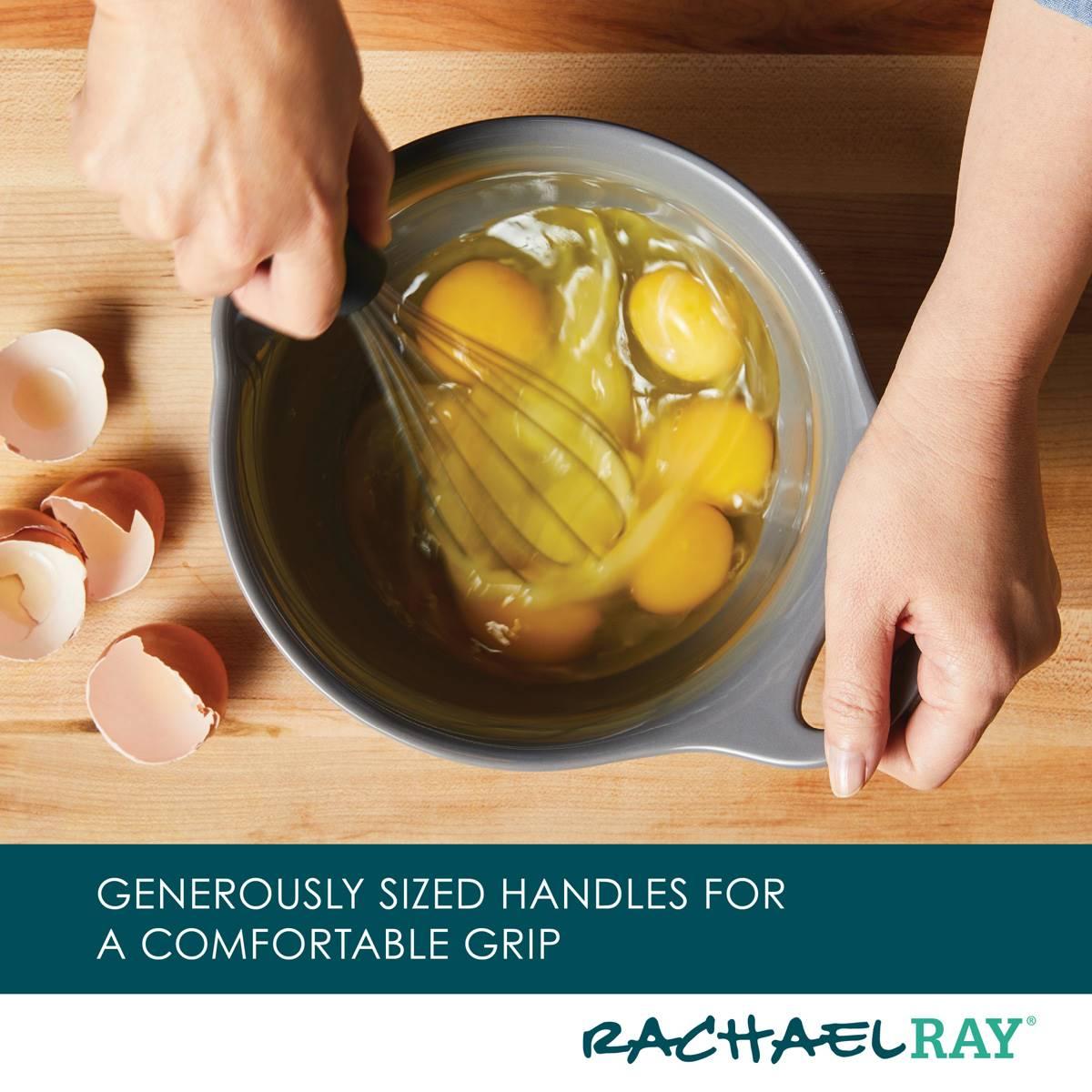 - KITCHEN FRIENDLY MIXING BOWLS: Rachael Ray nesting mixing bowls are crafted from durable ceramic for practical mixing and serving with style.