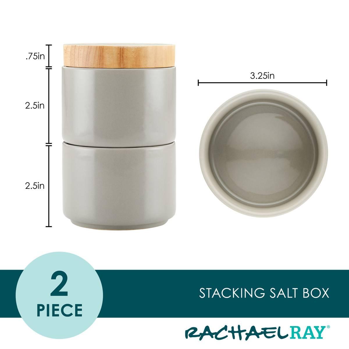Spice up breakfast, lunch, or dinner at the kitchen counter or table with the Rachael Ray Ceramic 2-Piece Stacking Spice Box. Crafted from durable ceramic, these versatile salt and spice cellars hold up to 9 ounces of spices and seasonings to have your most used ingredients within reach. Finished with a stain-resistant glaze, these dishwasher-safe spice boxes are easy to clean, and are also microwave and freezer safe for reheating and food storage (lid not intended for dishwasher, microwave, or freezer use).